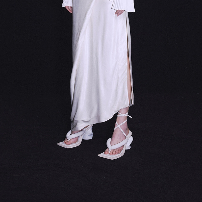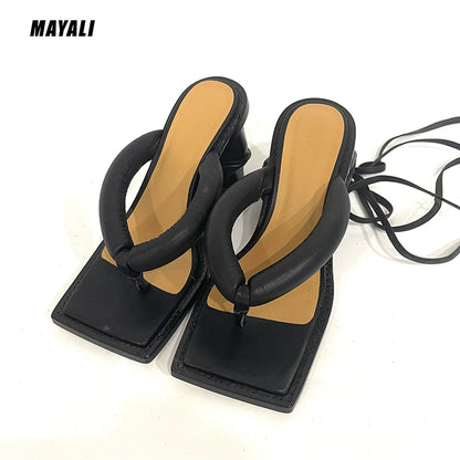 Mayali square toe heeled clip-on sandals leather strap heels - Igore