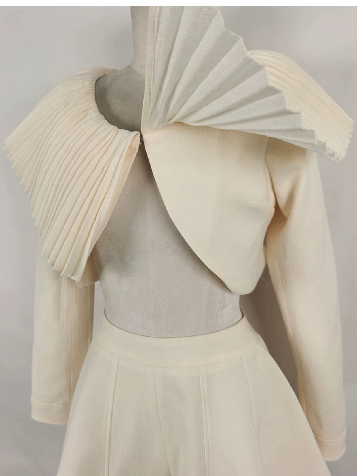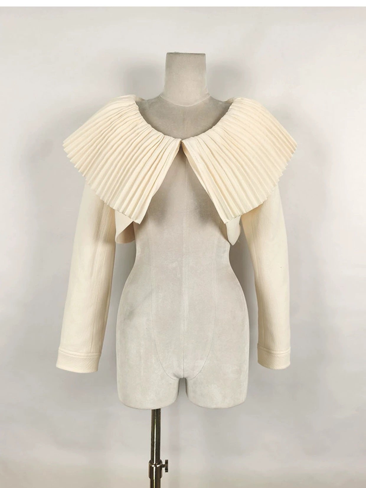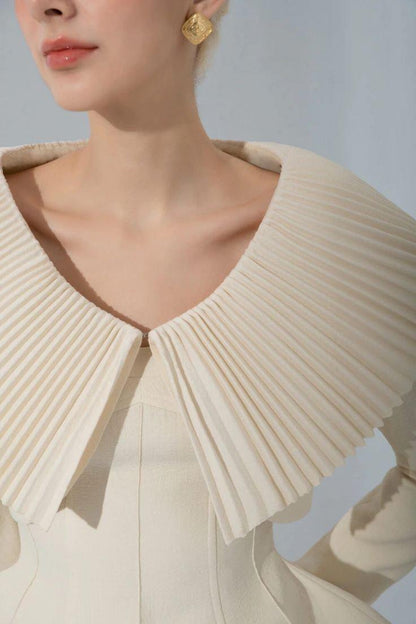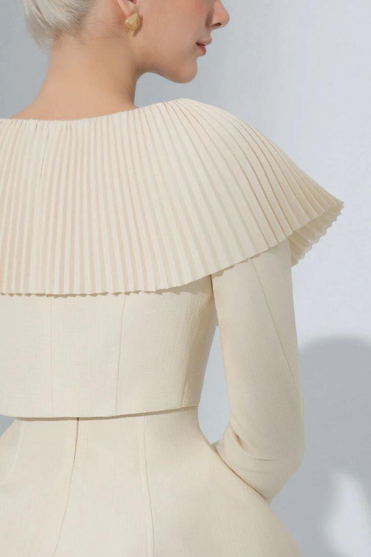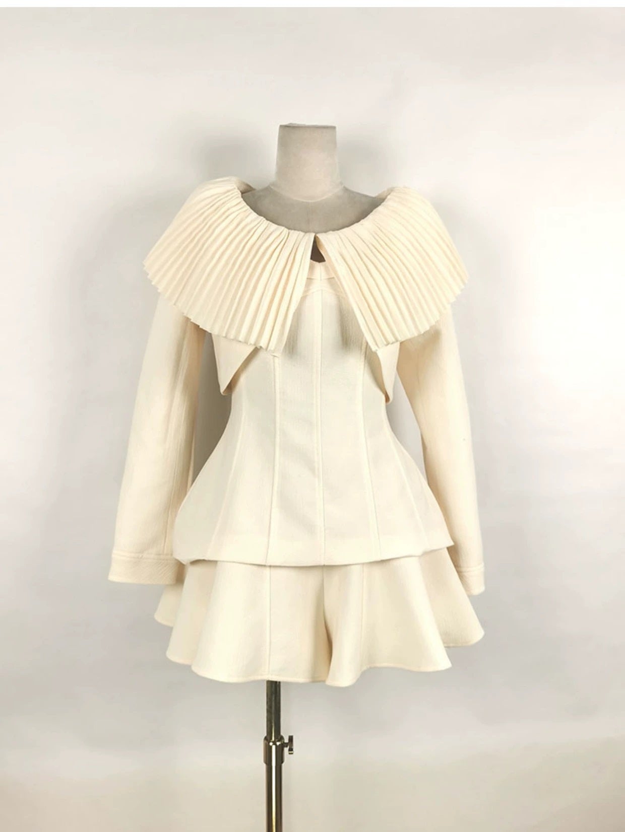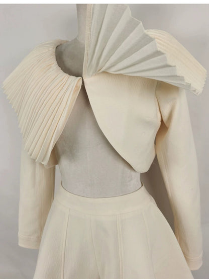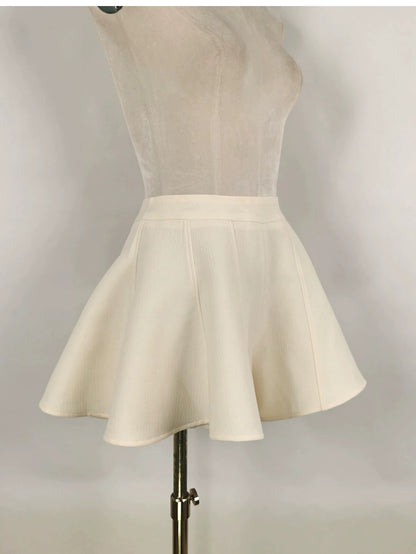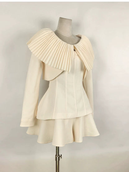 Milky beige sophisticated elegant Round Neck short cropped Coat + Shorts + Top three pieces set - Yus