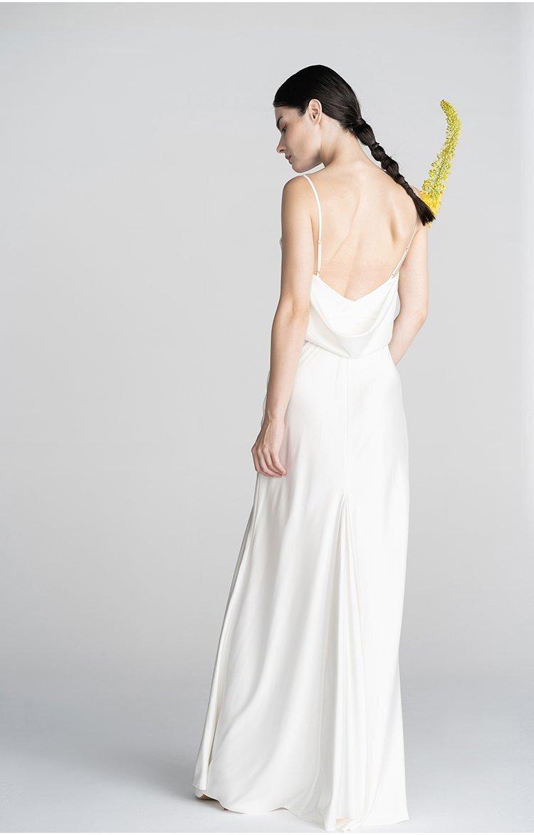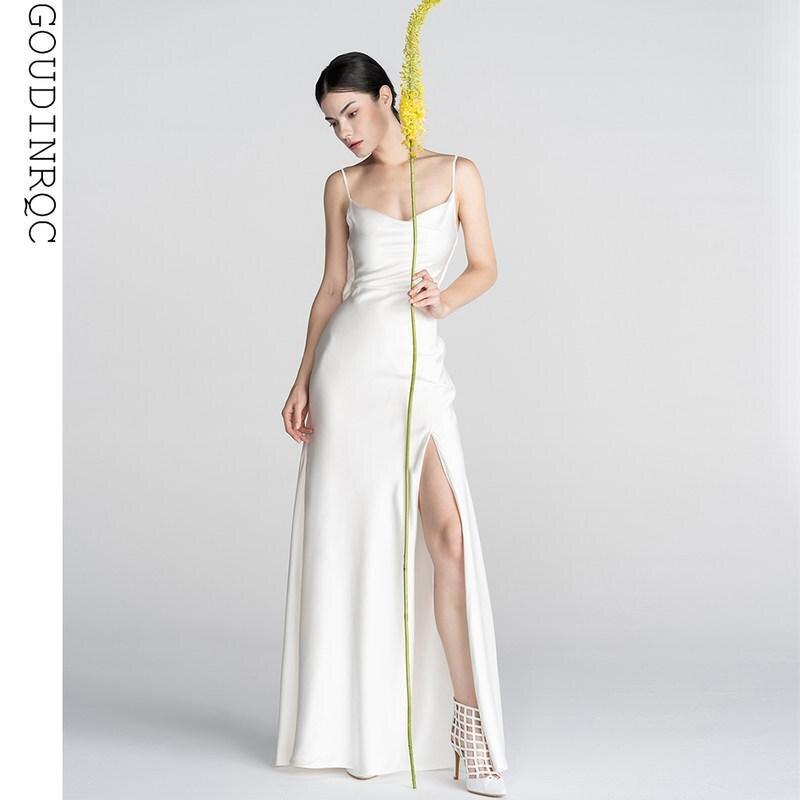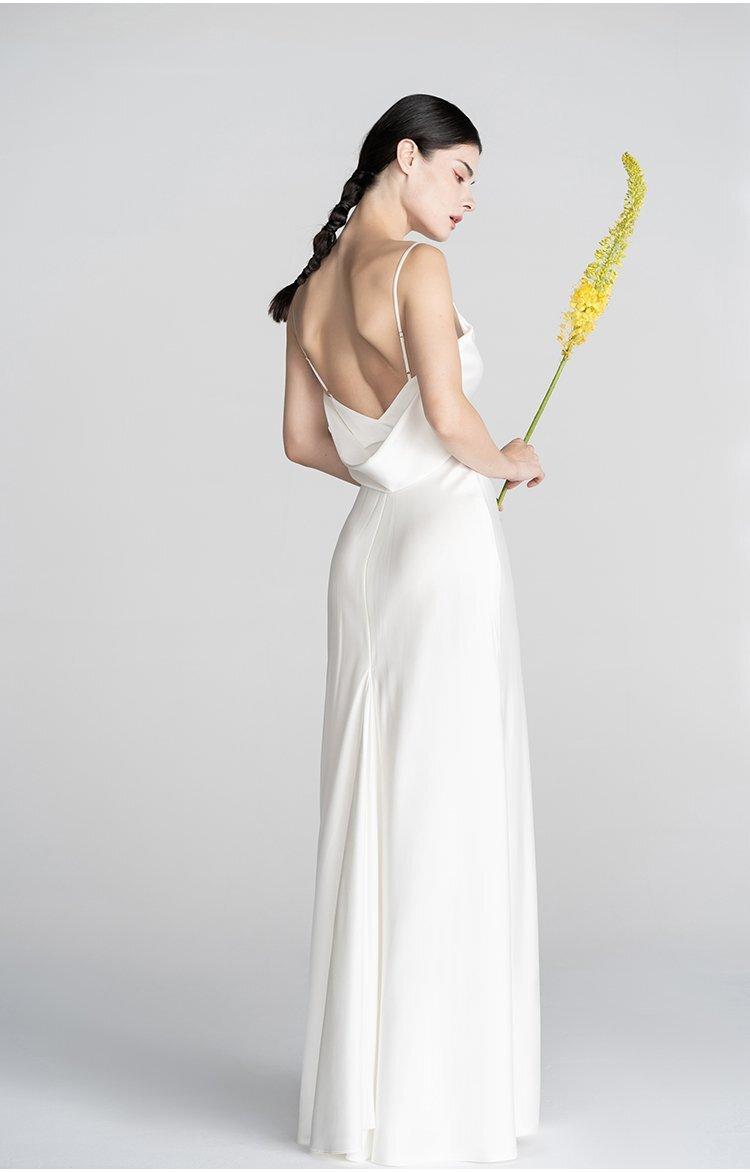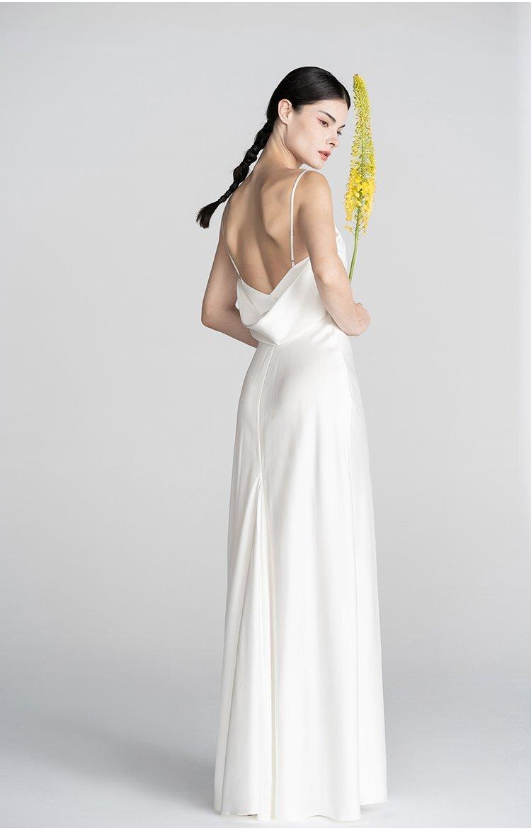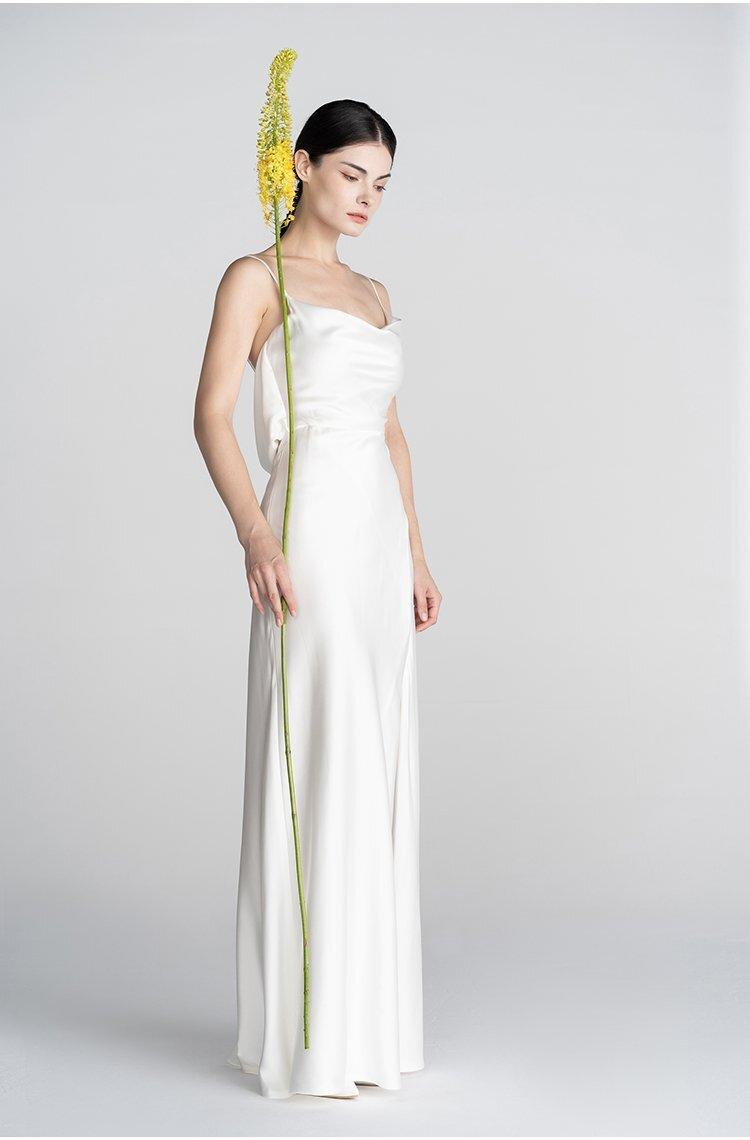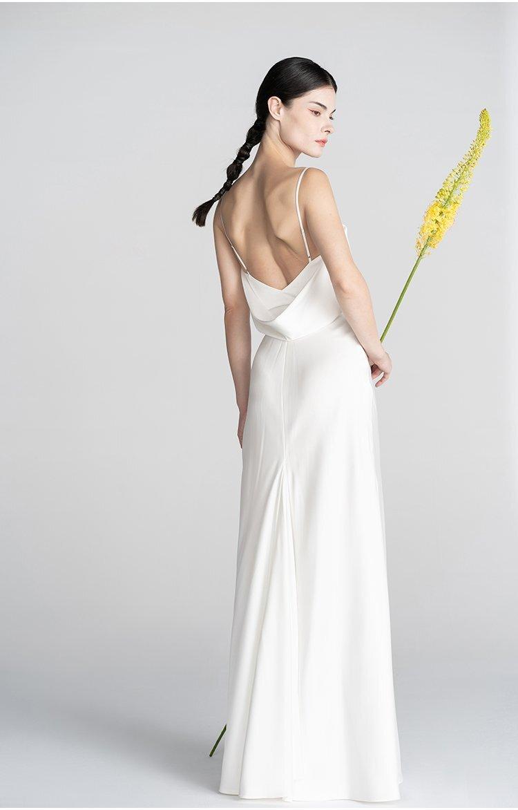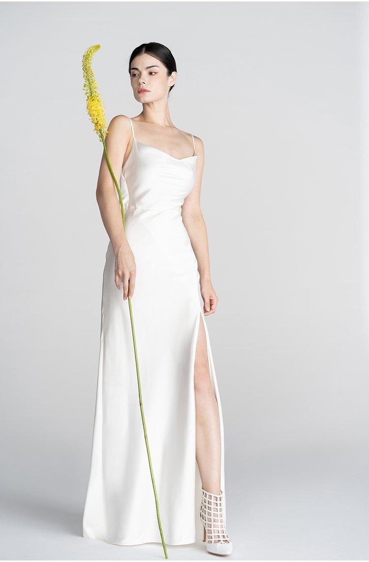 Minimalist classical French Elegant simple slip slit long wedding Bridal Dress - Bomi