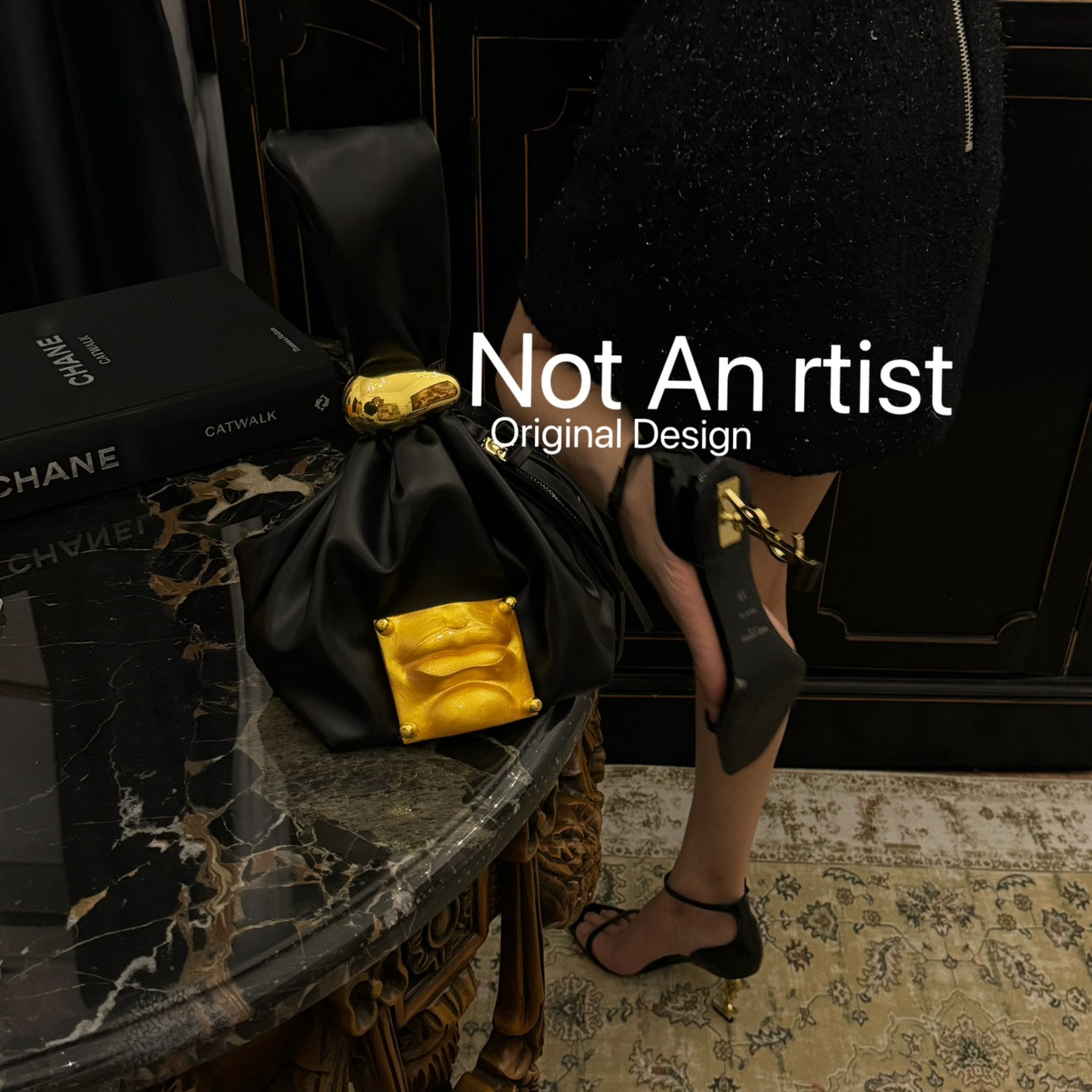 NOT AN ARTIST baroque gilded gold Lip hand-sewn PU leather bag - LOVE
