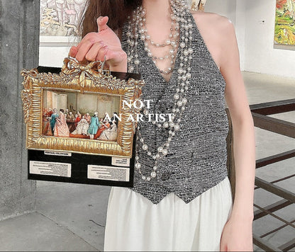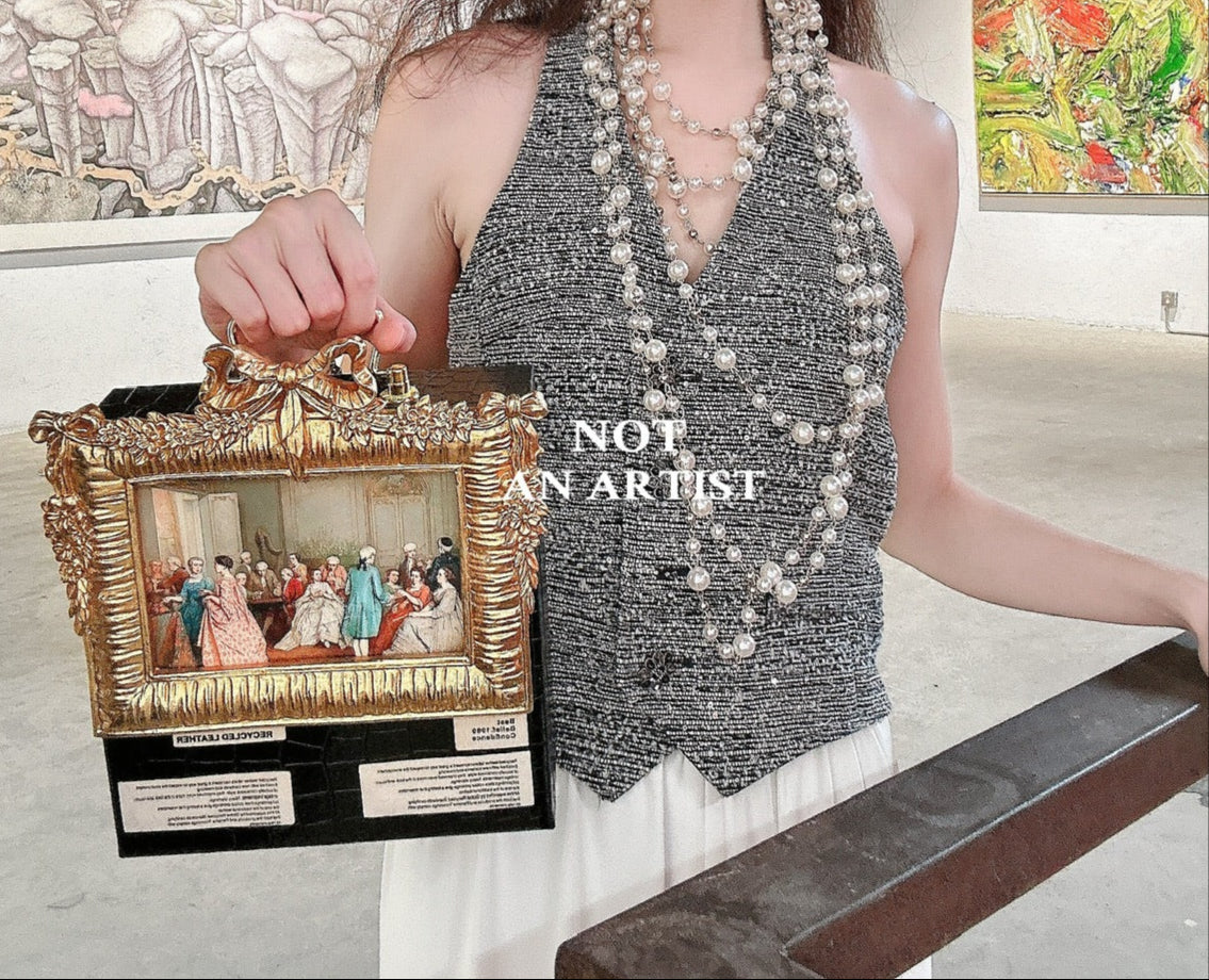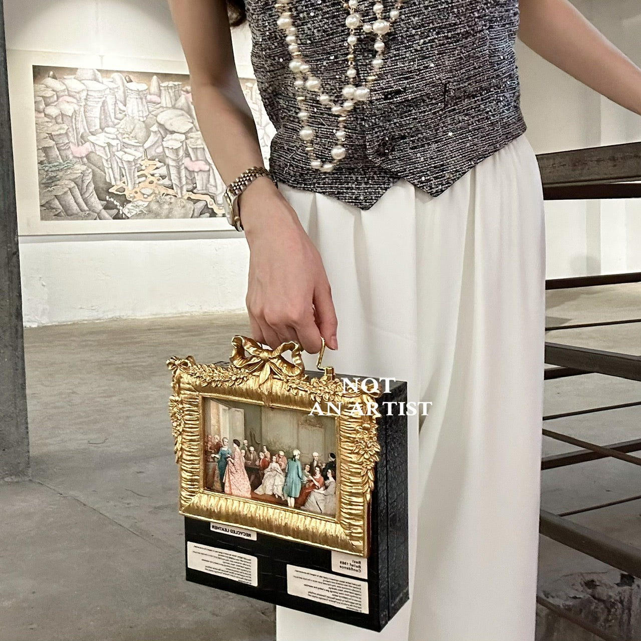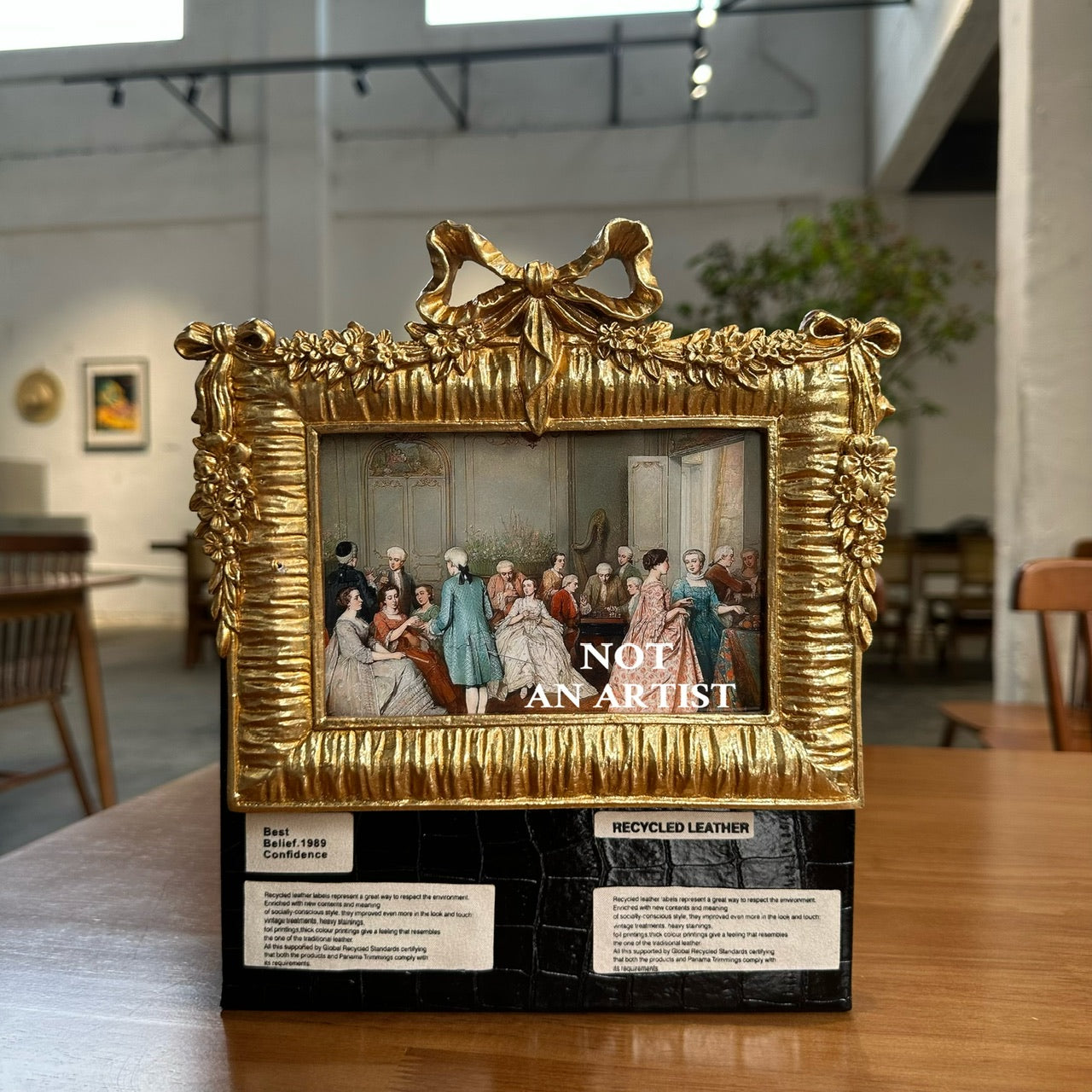 Make a statement with the NOT AN ARTIST Clutch Box Bag! This elegant vintage bag is perfect for art students and makes a unique gift. Show off your style with this one-of-a-kind accessory. Sortee in a Rococo Interior by Benjamin Eugène Fichel inspired box bag