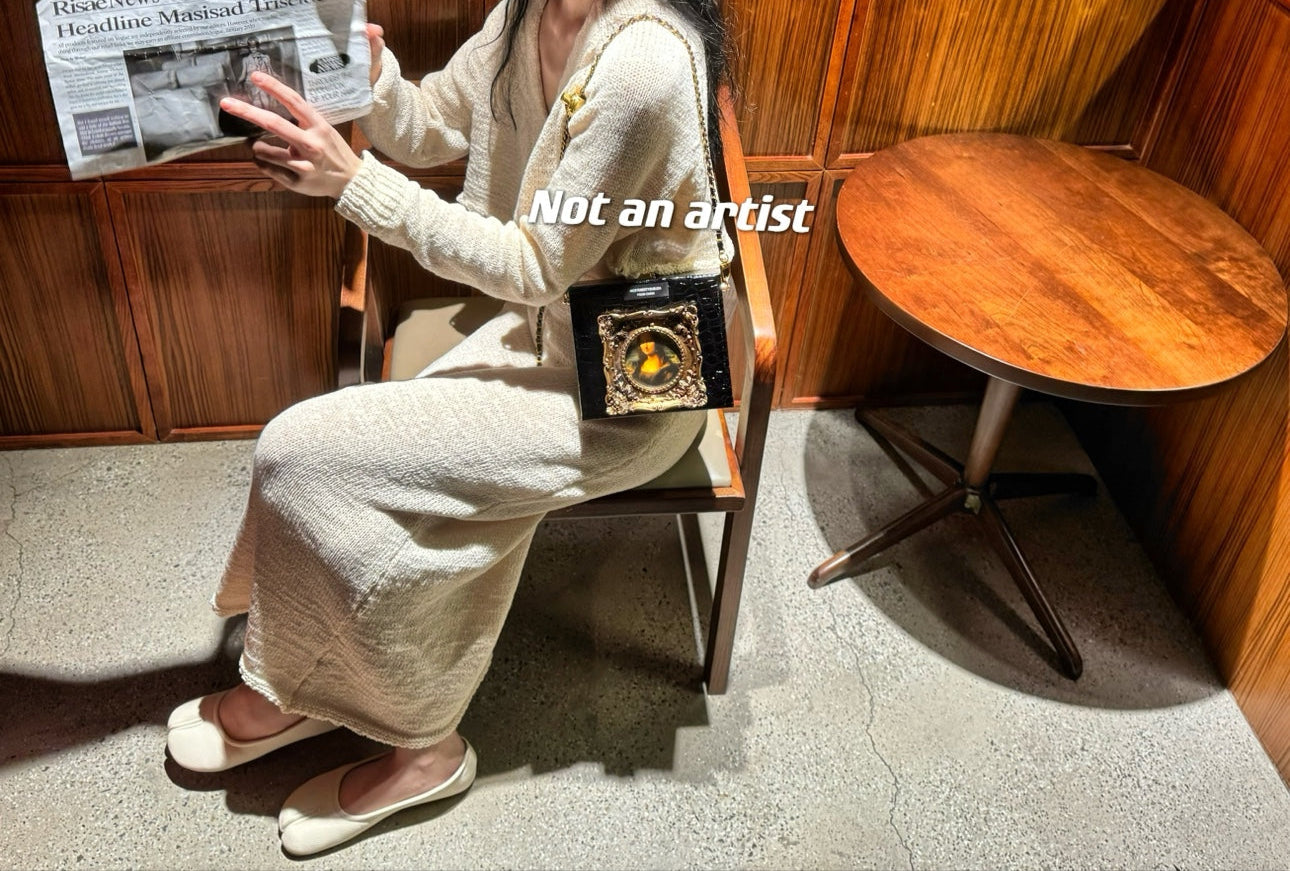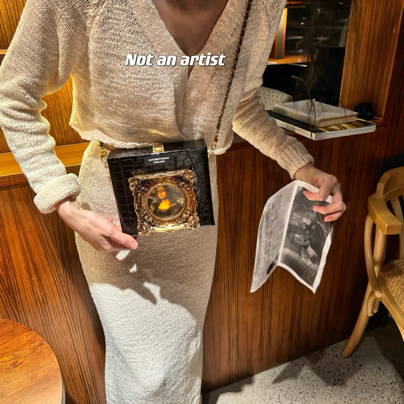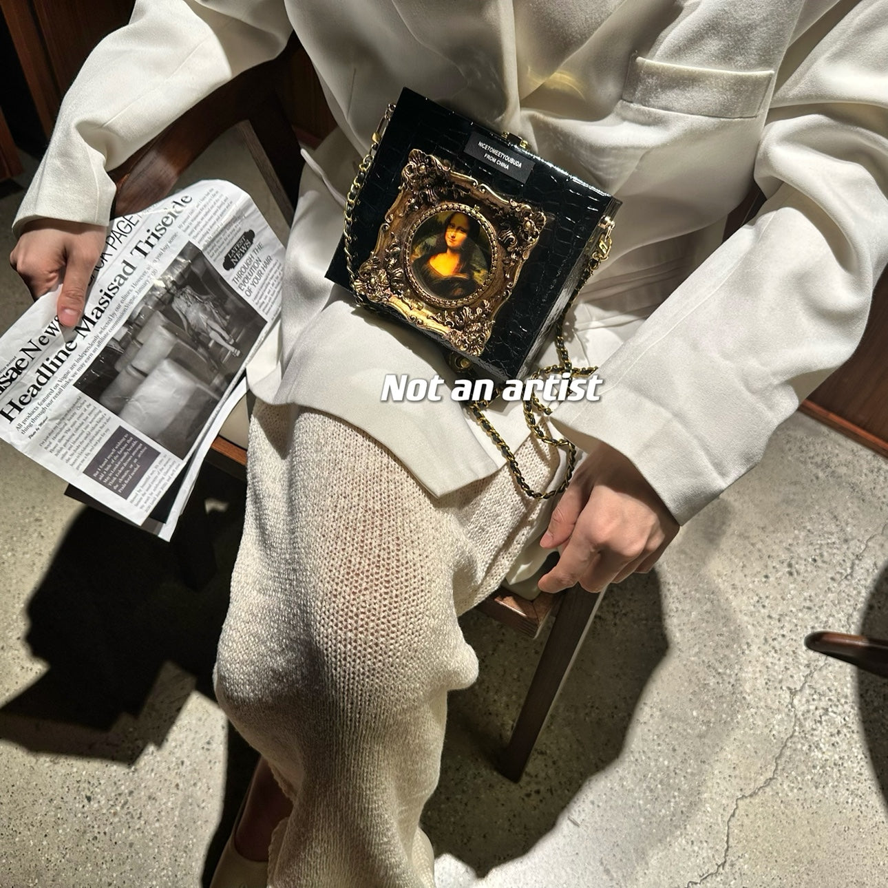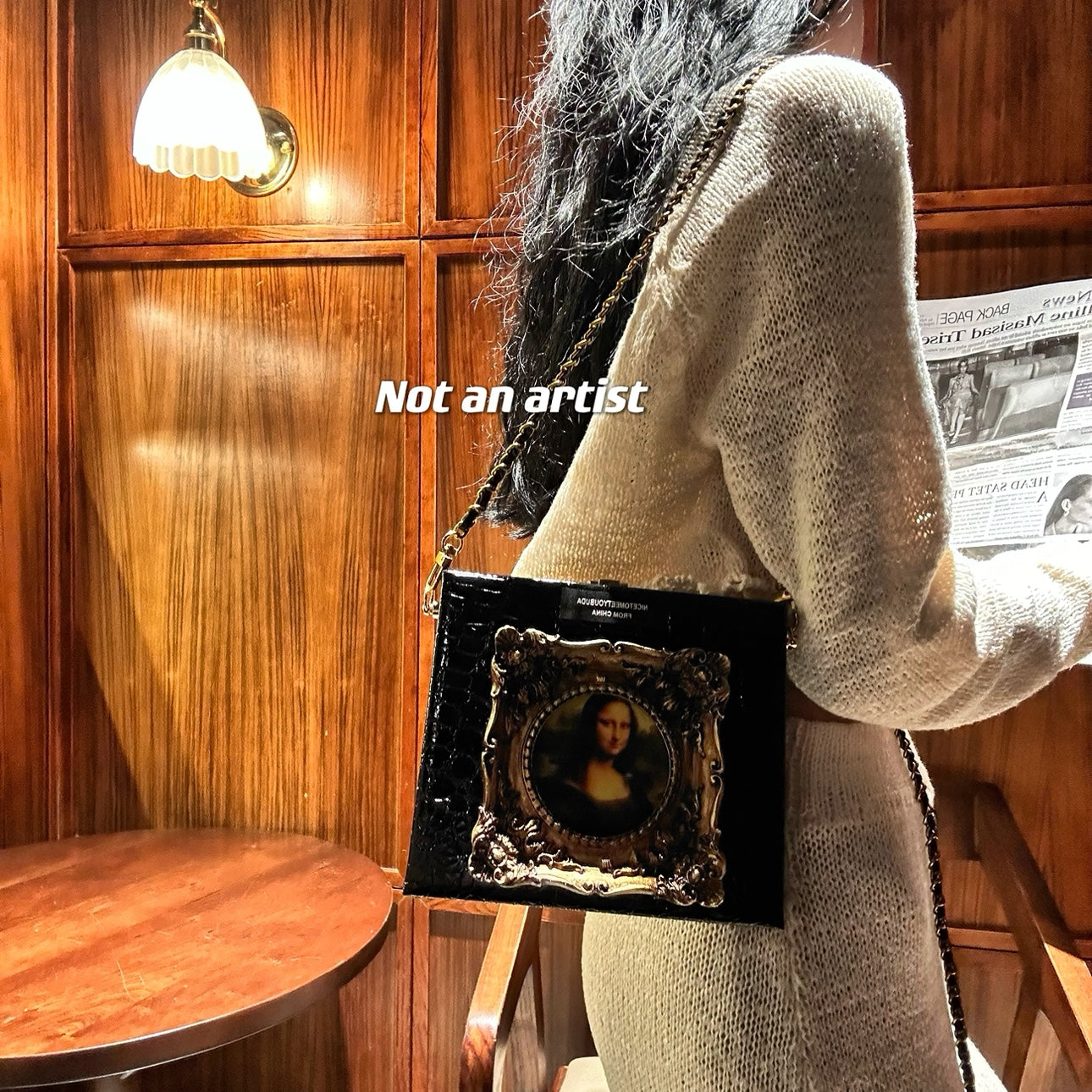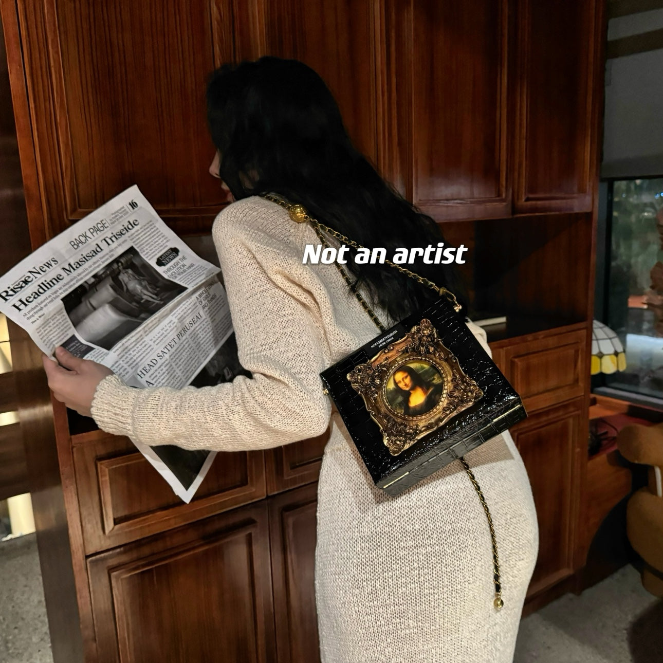 NOT AN ARTIST baroque embossed Mona Lisa frame painting bag - MONALISA