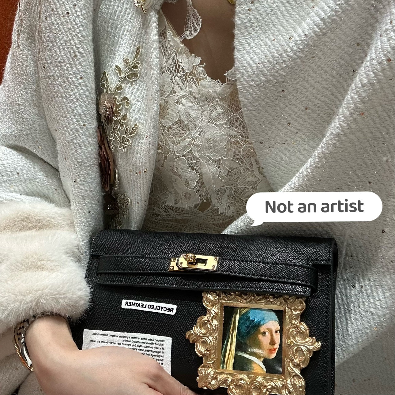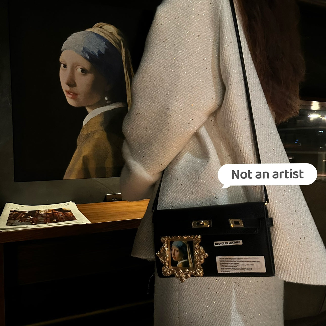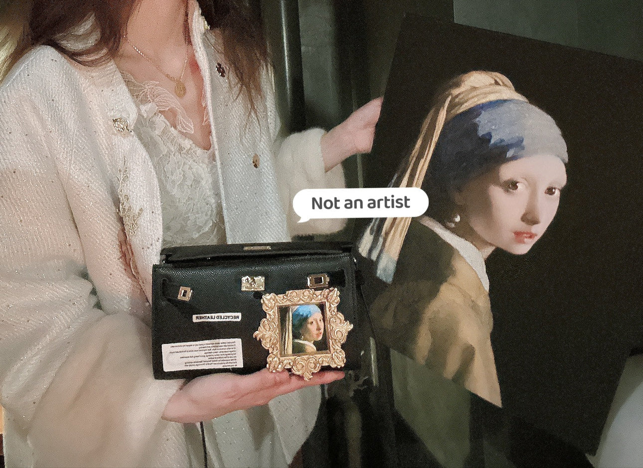 NOT AN ARTIST handmade baroque Girl pearl earring painting clutch bag - Yearn