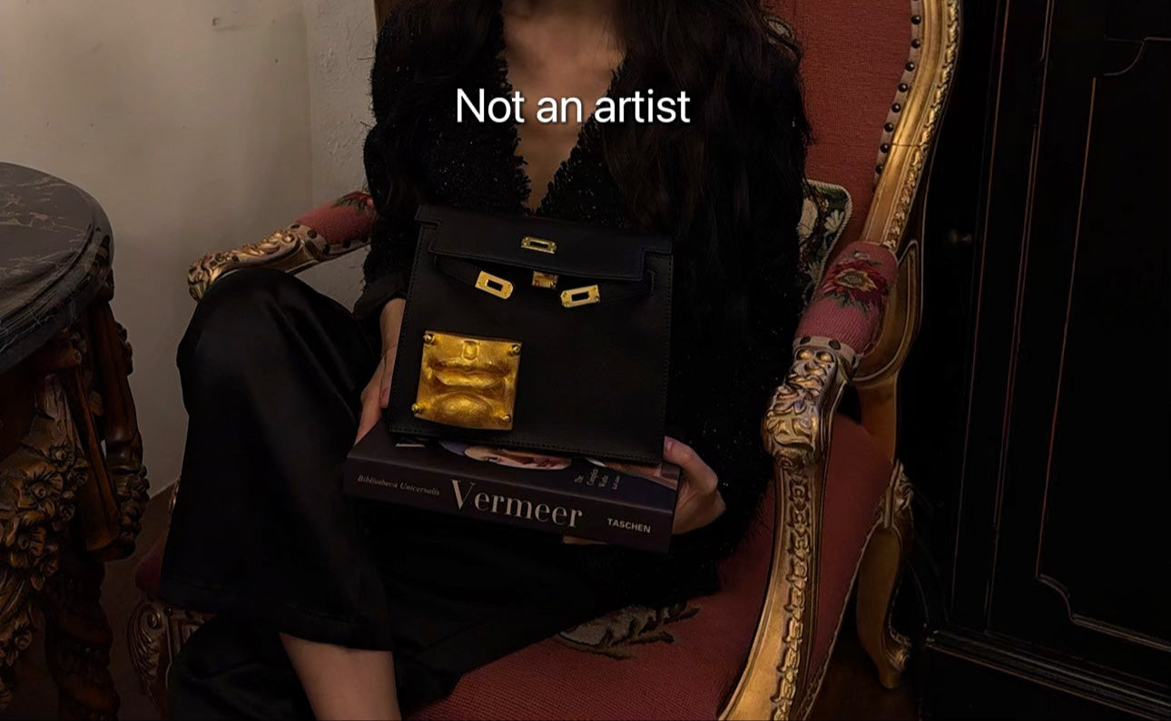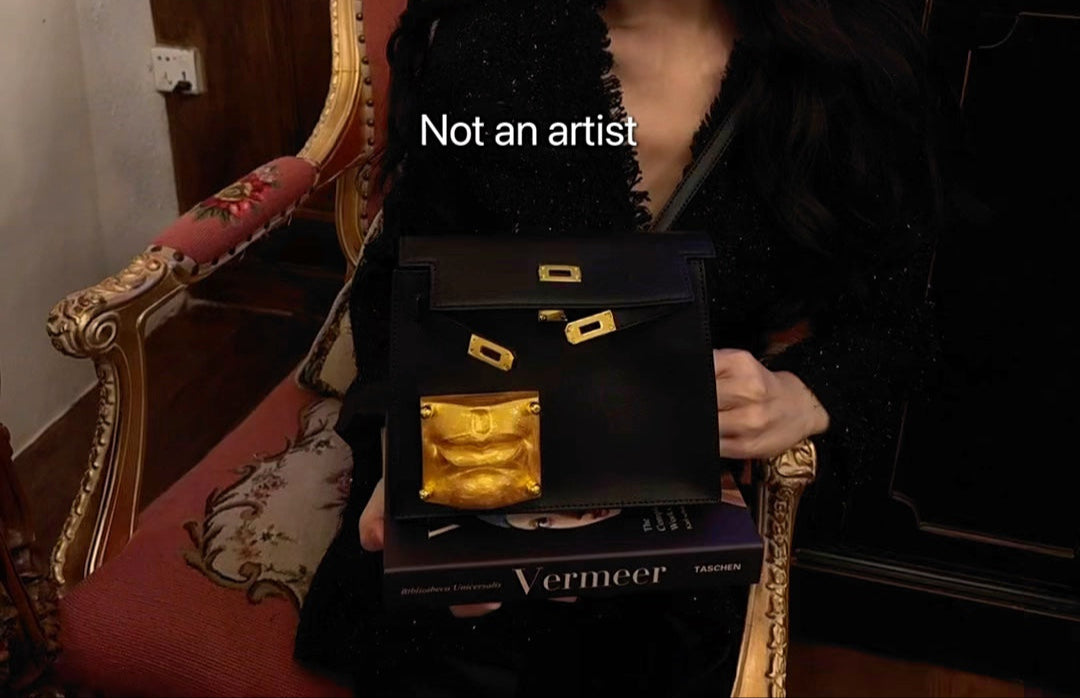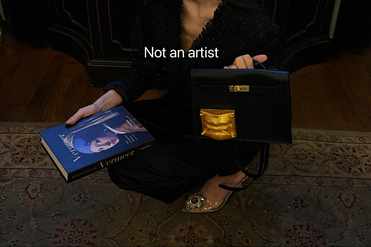Introducing the NOT AN ARTIST EFFI - a truly elegant and original three-dimensional mouth bag, handcrafted with the utmost attention to aesthetic detail. Bring a touch of sophistication to any outfit with this unique piece. Perfect for those seeking a distinctive fashion statement.