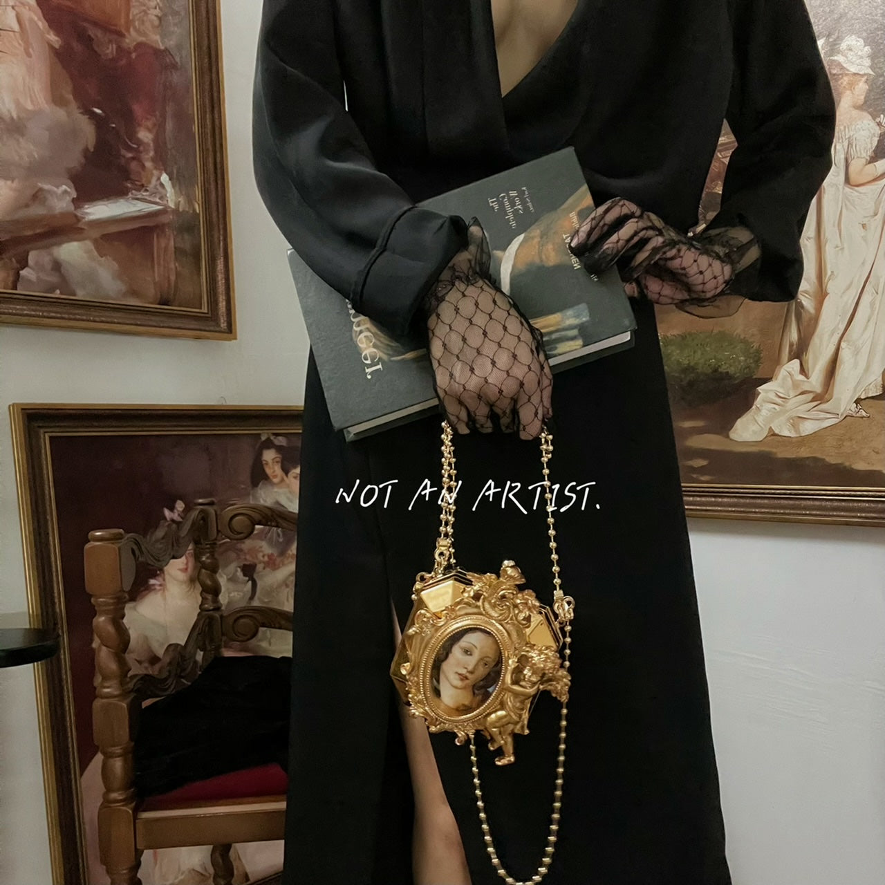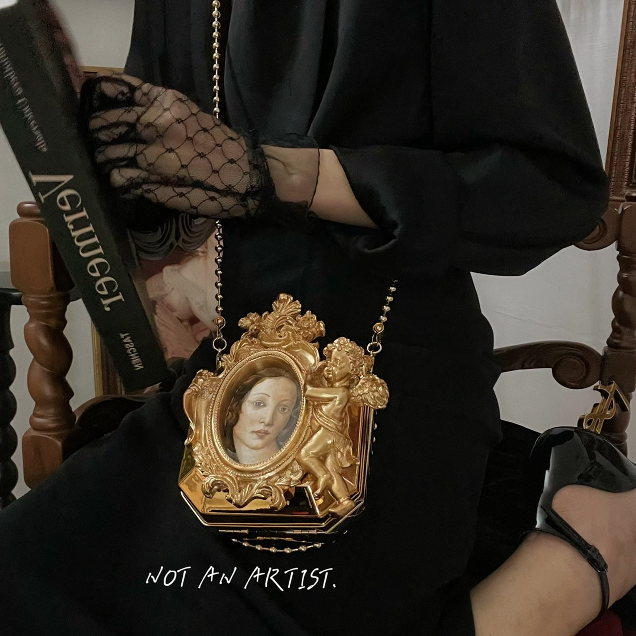 Introducing the NOT AN ARTIST Luxury Gold Acrylic Bag - The Lady. Made with elegant vintage design and premium gold acrylic material, this bag exudes luxury and sophistication. Stand out from the crowd with this one-of-a-kind accessory that adds a touch o opulence to any outfit.
