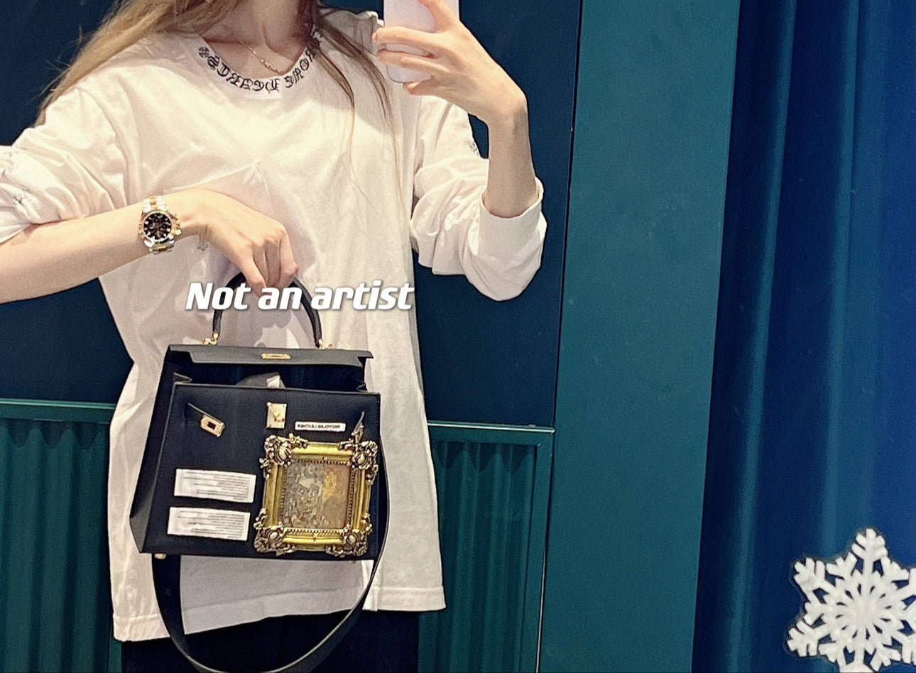 NOT AN ARTIST Handmade vintage baroque Adele's portrait painting Kelly inspired bag - Bauer