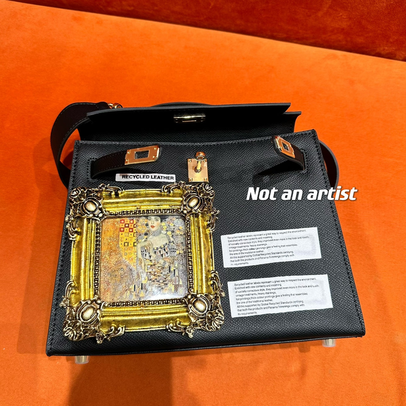 Indulge in luxury with this vintage replica of the iconic Adele's Portrait No. 1 painting - now available as a stylish Kelly bag. Crafted with highest quality materials, this bag is a perfect blend of elegance and art, making it a must-have for any fashion-forward individual.