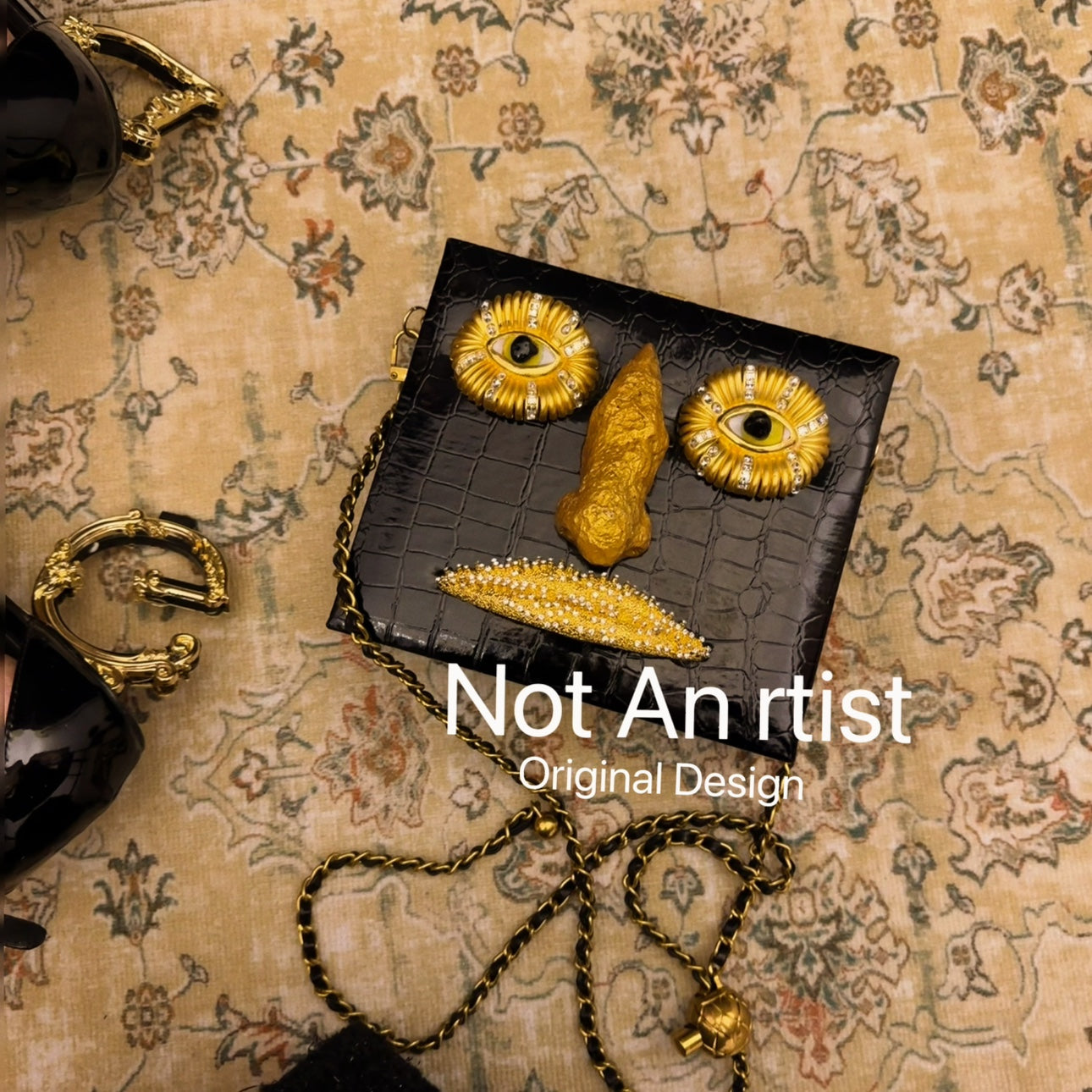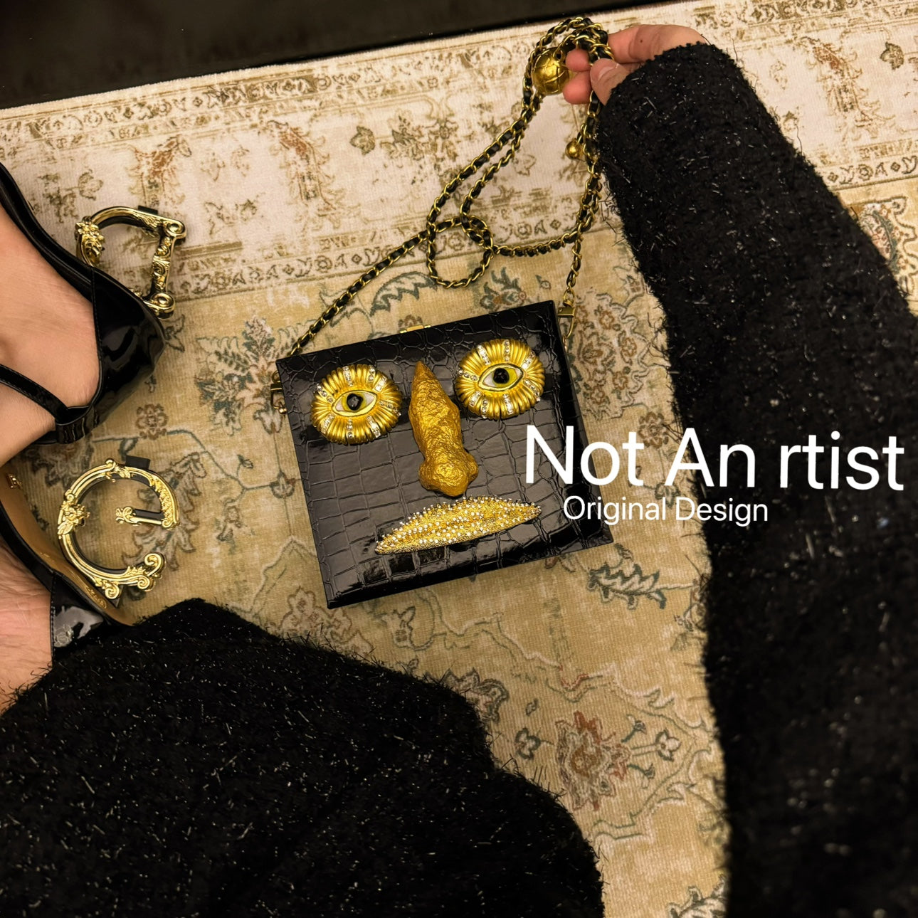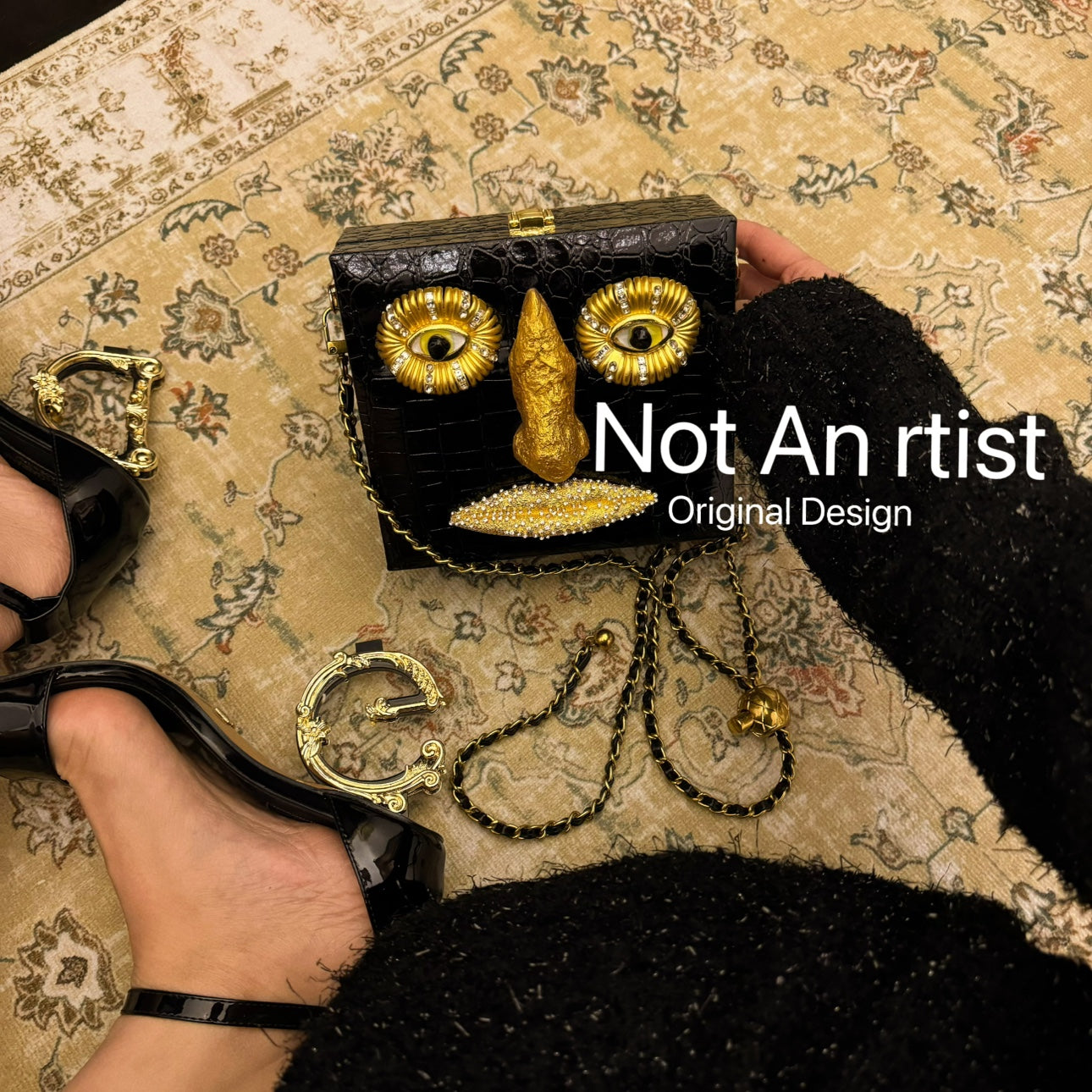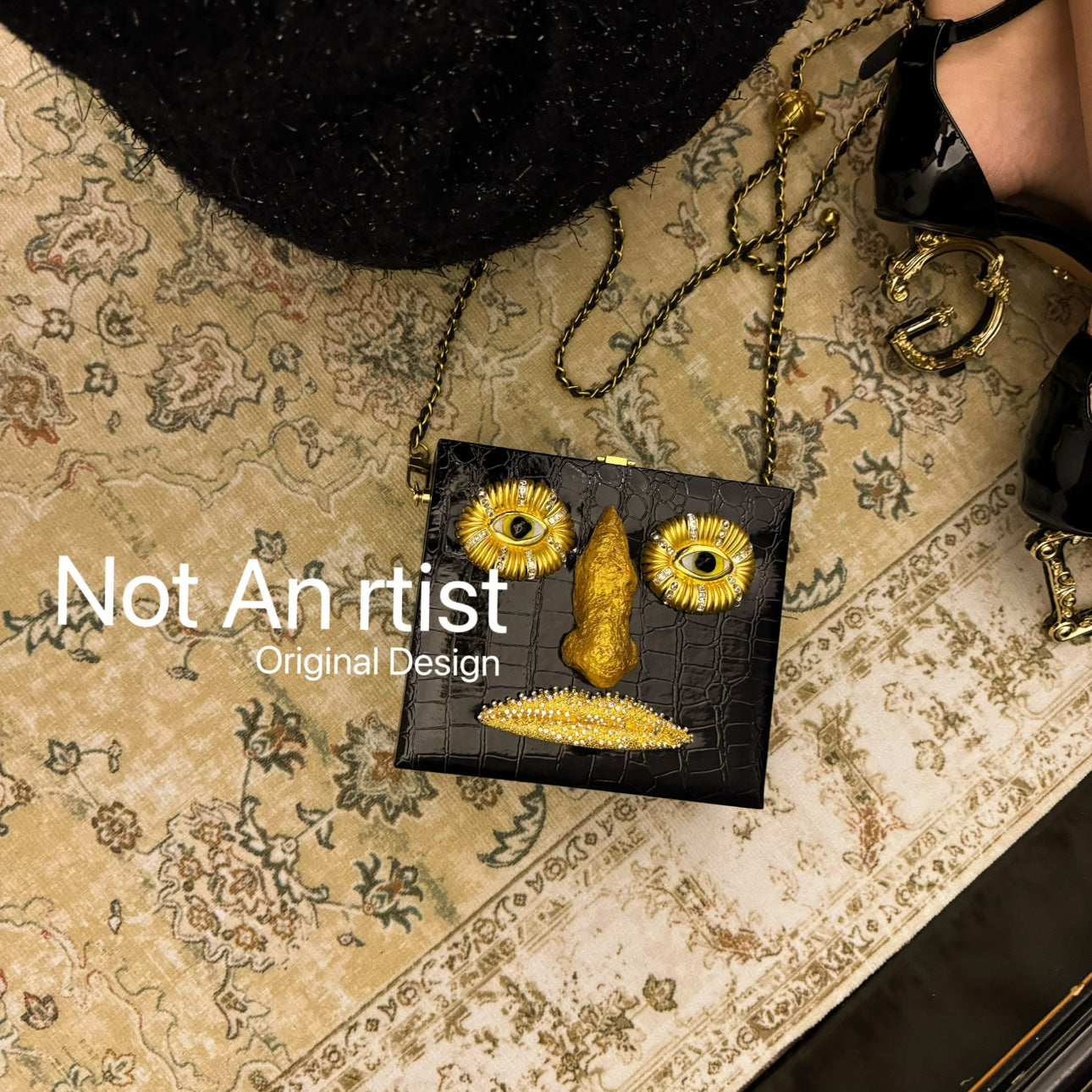 NOT AN ARTIST handmade Vintage gold face nose chain box bag - ARCON