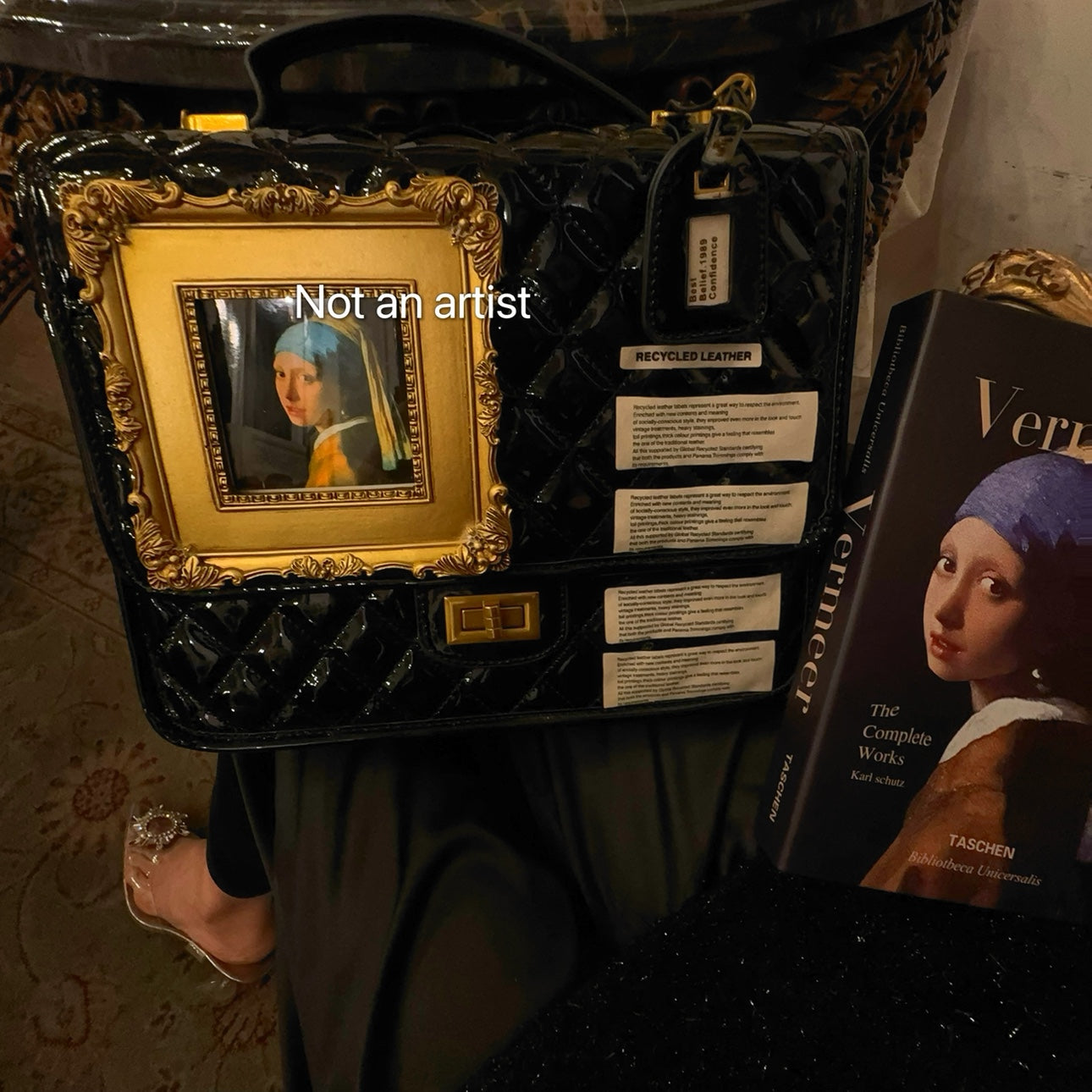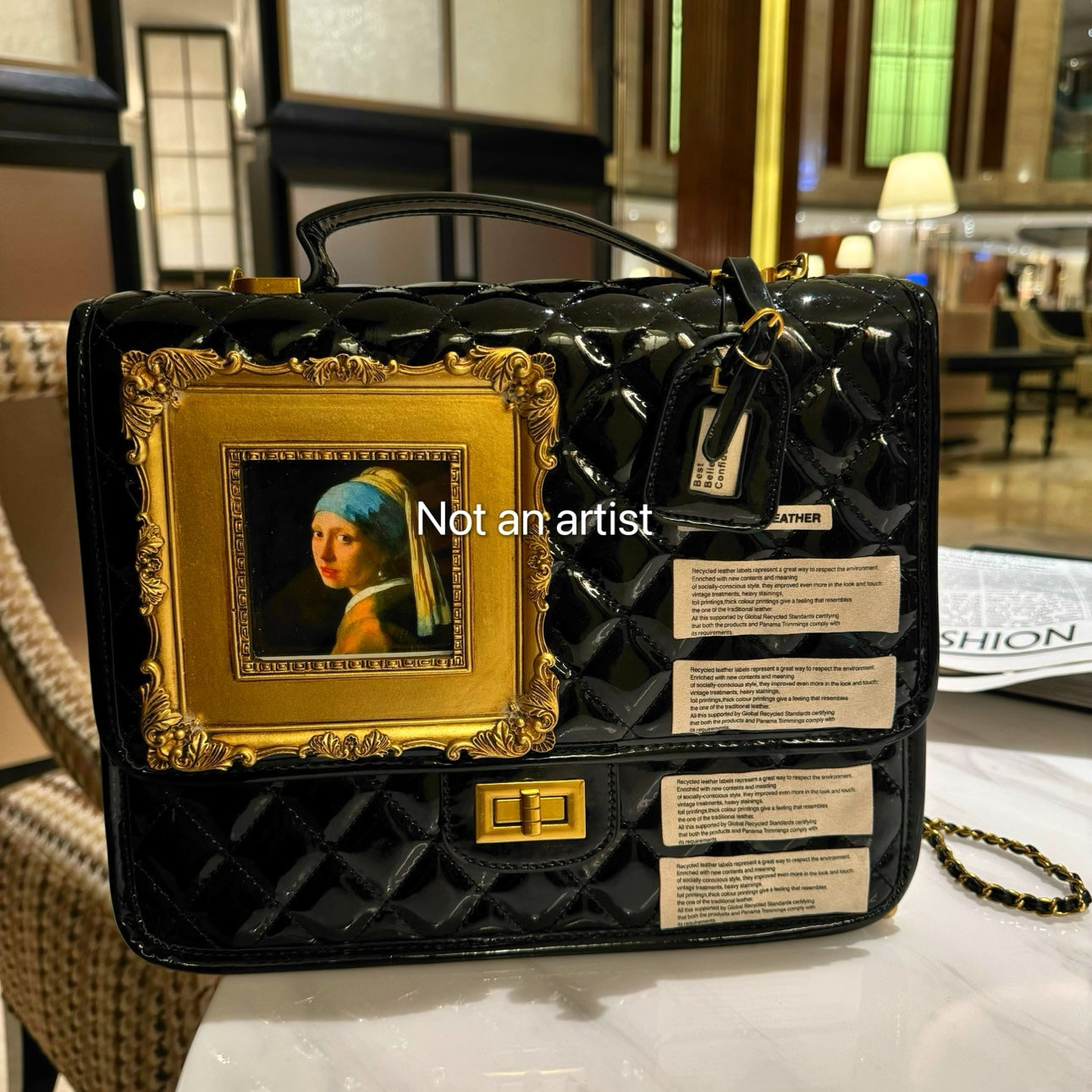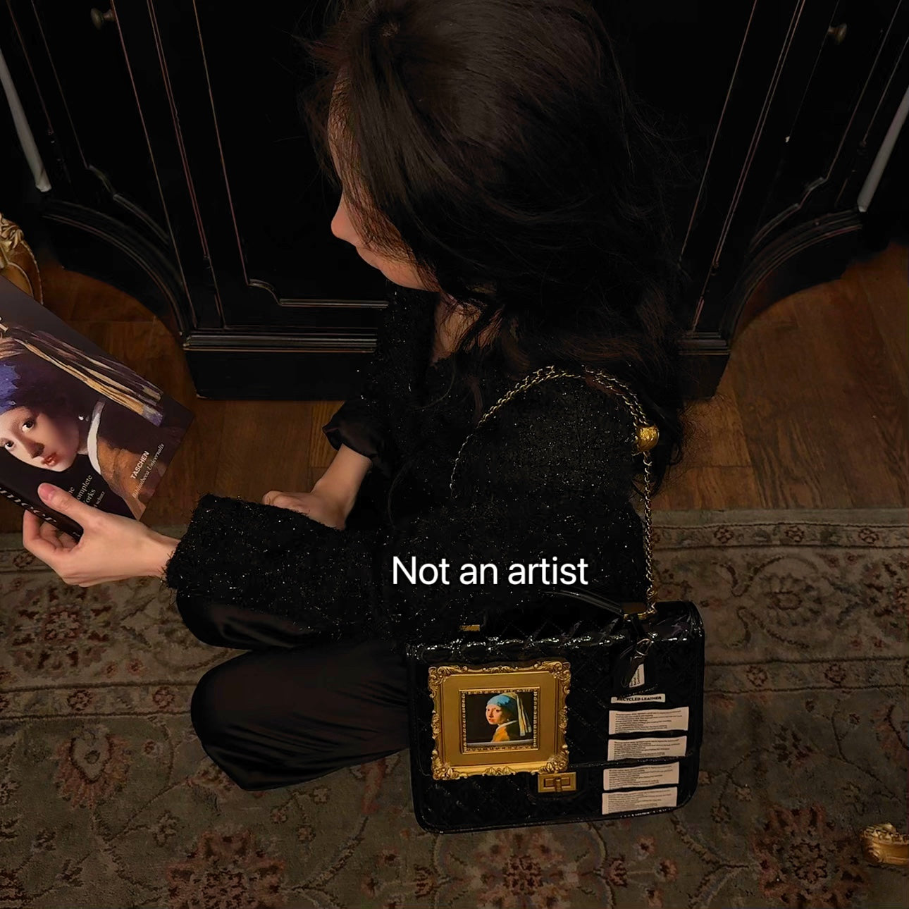 Introducing the NOT AN ARTIST Walking artist patent leather briefcase - CUE. Crafted with elegant and luxurious patent leather, this briefcase is the perfect accessory for any walking artist. With its sleek design and durable construction, it's the ideal way to protect and transport your supplies while on the go. Elevate your style and enhance your creativity with this sophisticated briefcase.