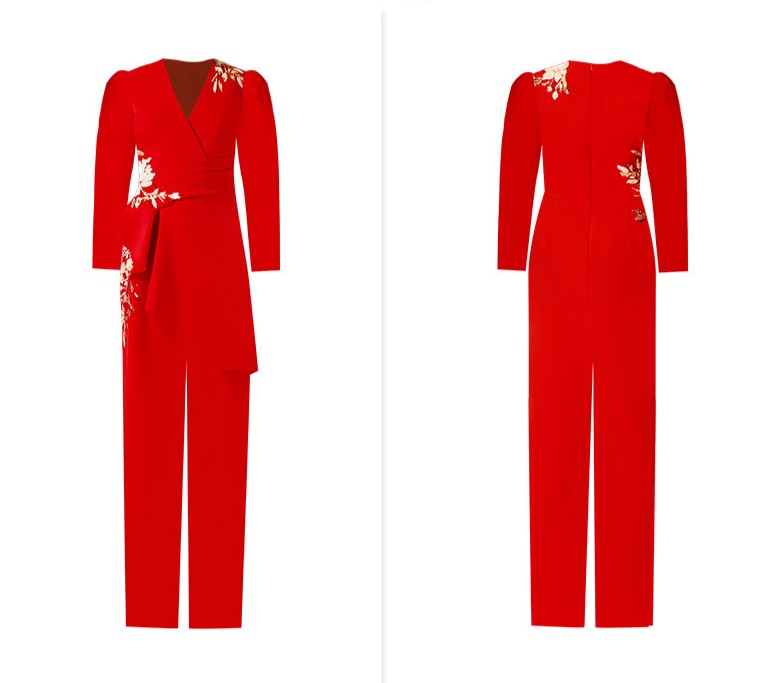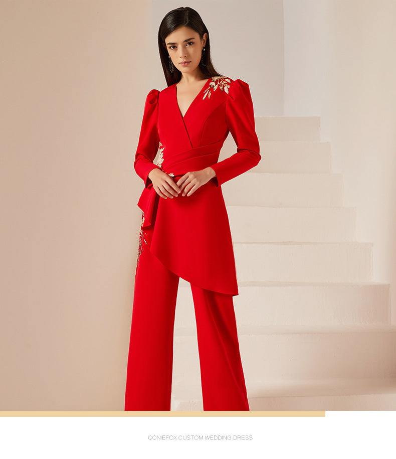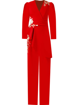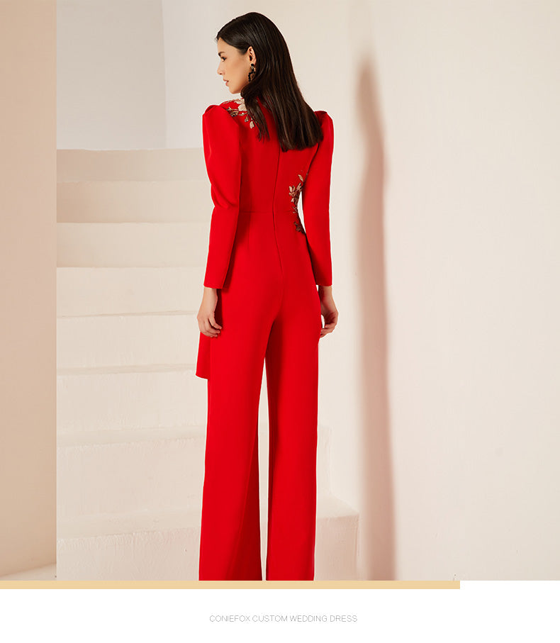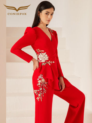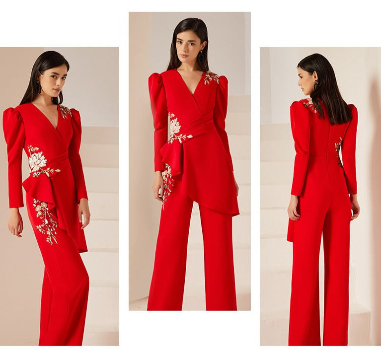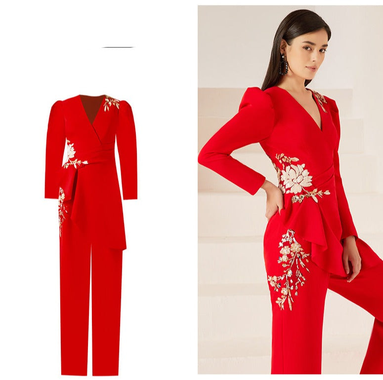 Gorgeous high end jumpsuit women's red business formal dress fashionable party host clothing slim jumpsuit- Tony