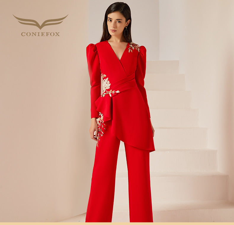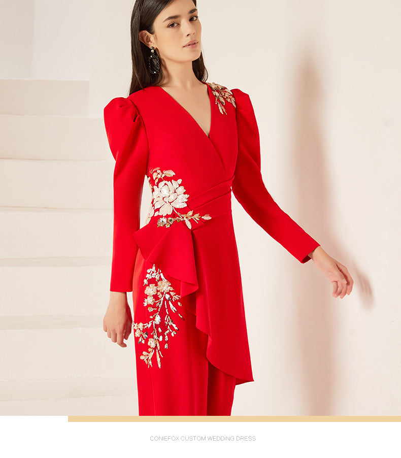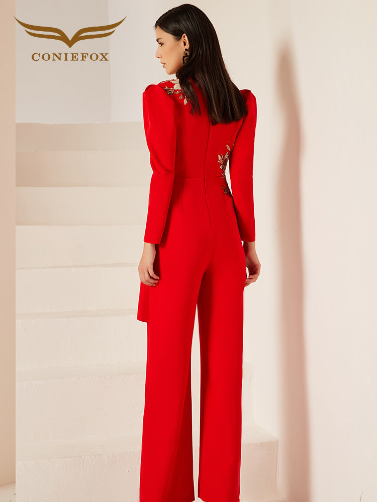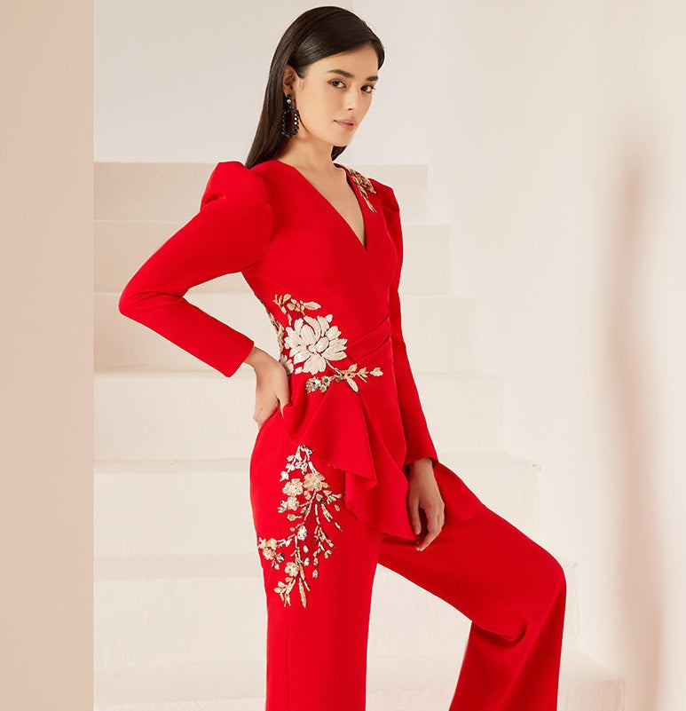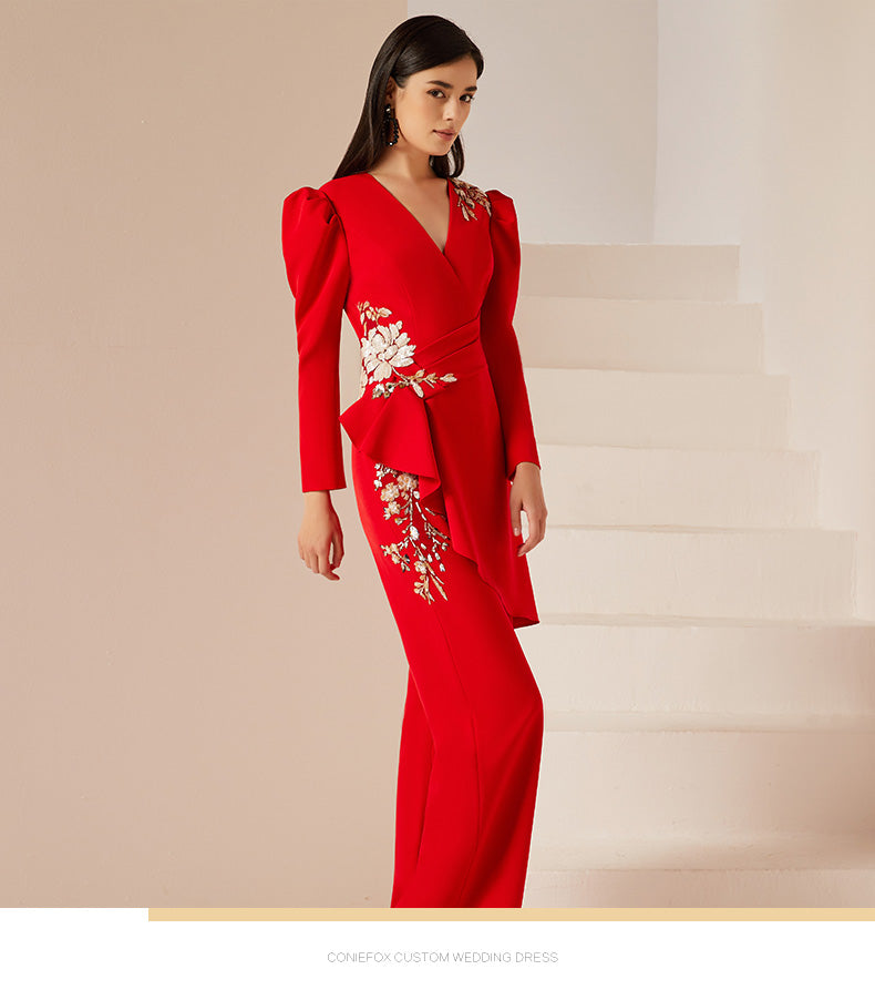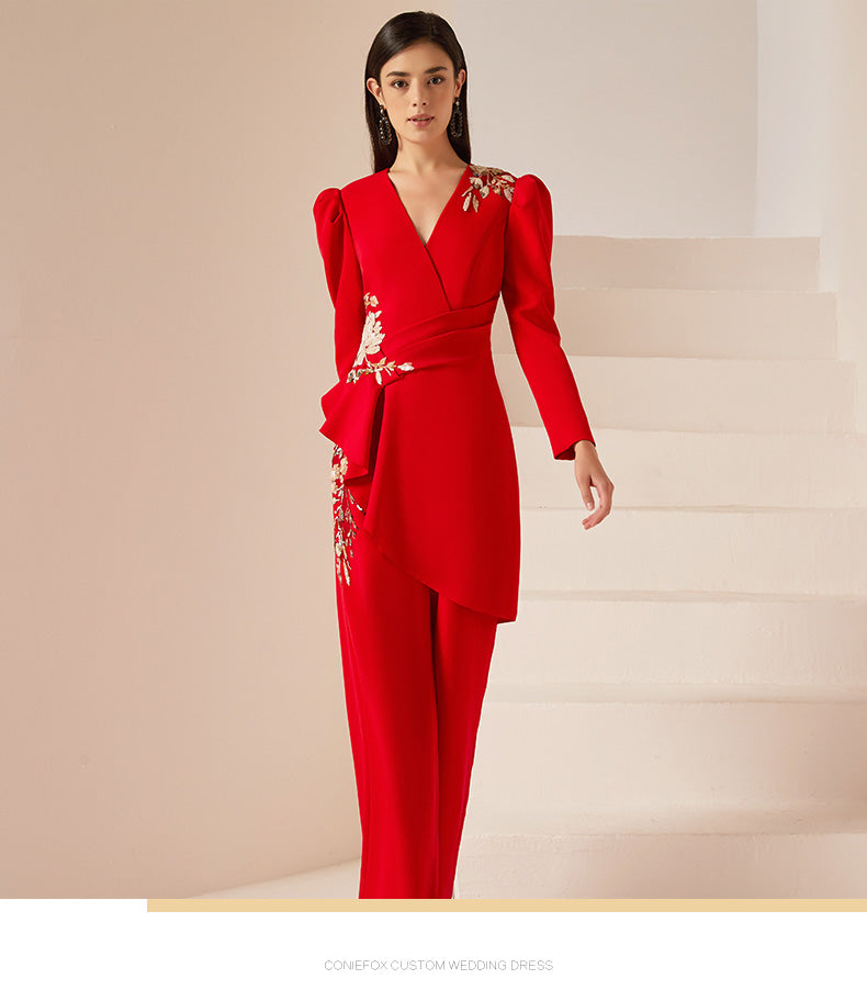 Gorgeous high end jumpsuit women's red business formal dress fashionable party host clothing slim jumpsuit- Tony