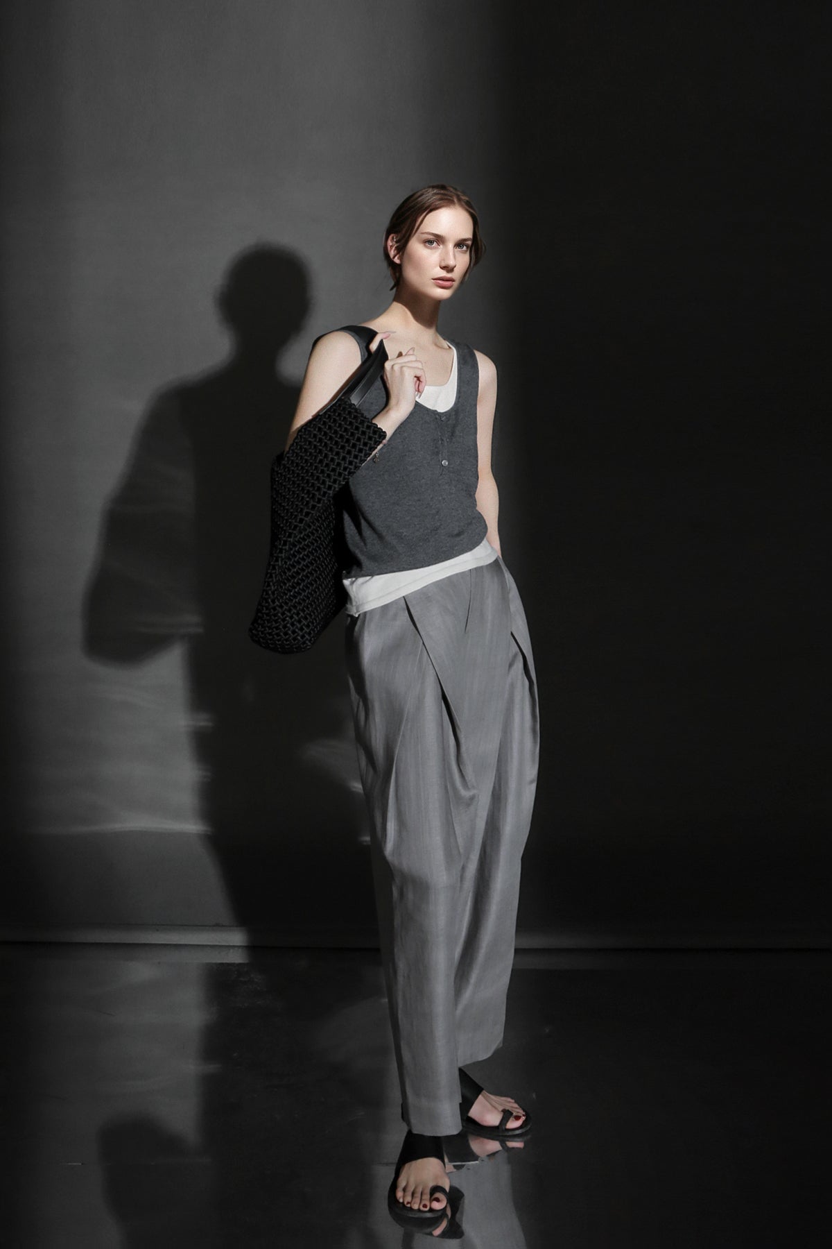 PIAOIN designer haute couture cross pleated niche Tencel linen wide leg straight pants -ALICE