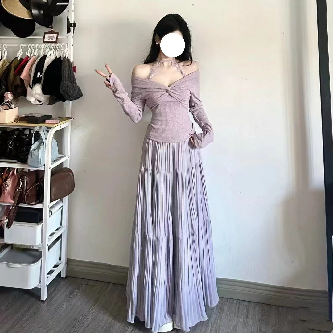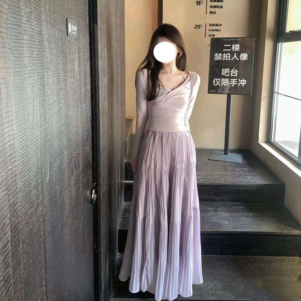 PIAOIN French pleated design three-tiered cake maxi pleated skirt spring-BELLE