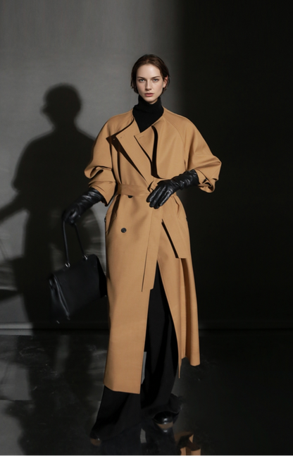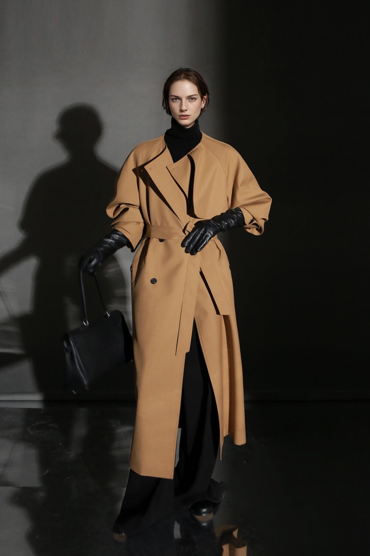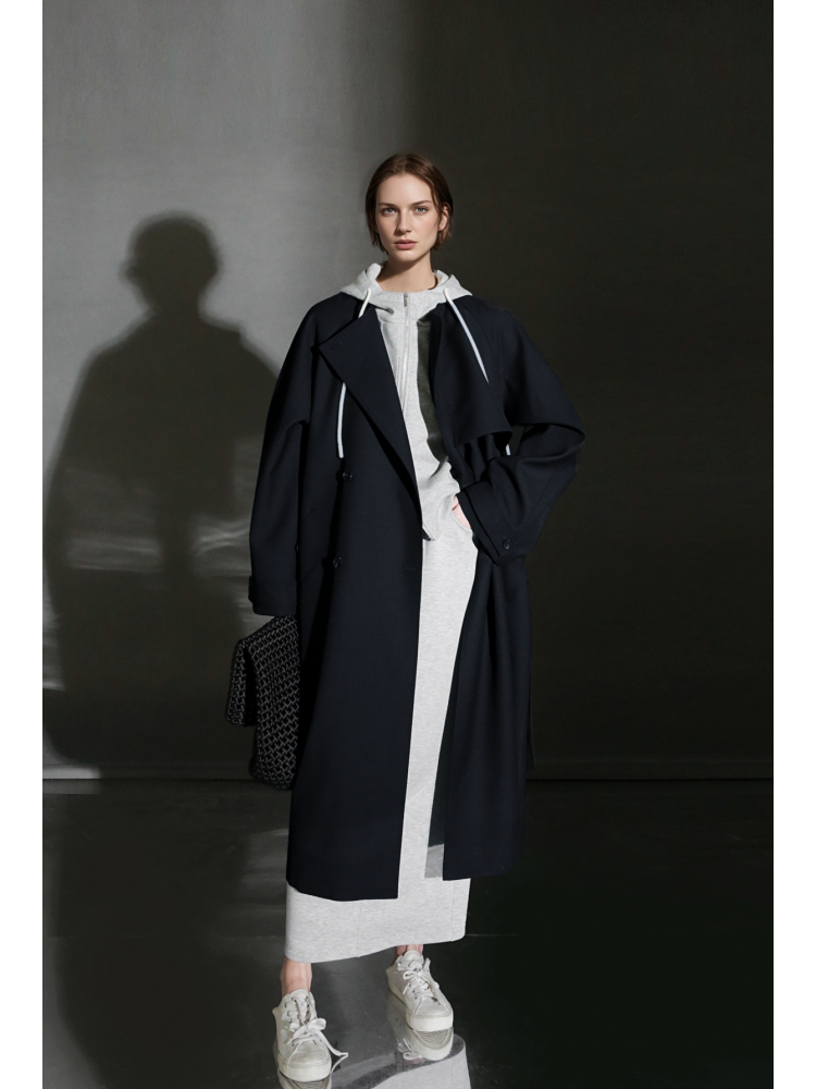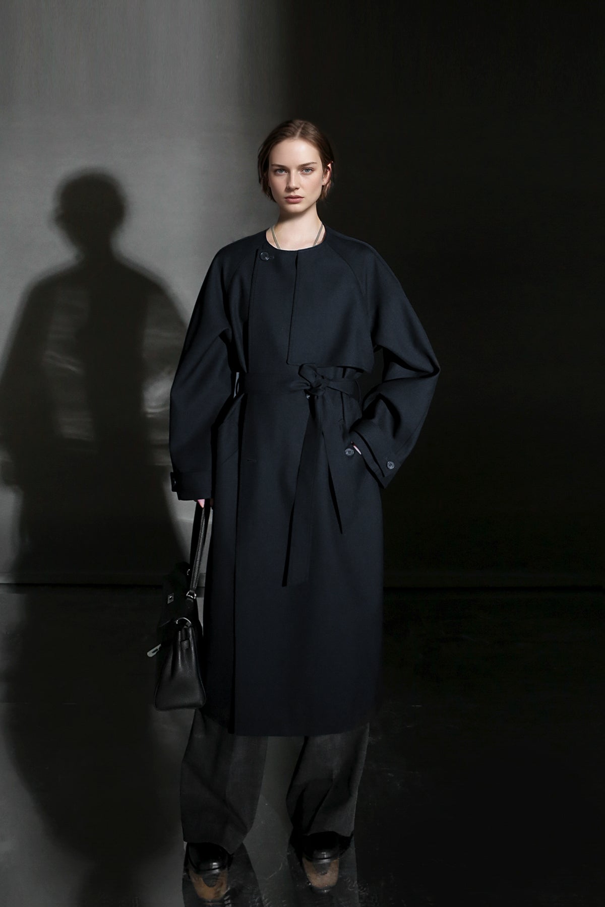 PIAOIN high-end wool relaxed round neck design old money windbreaker jacket -GINA