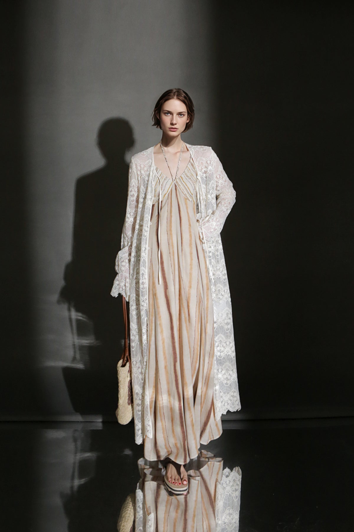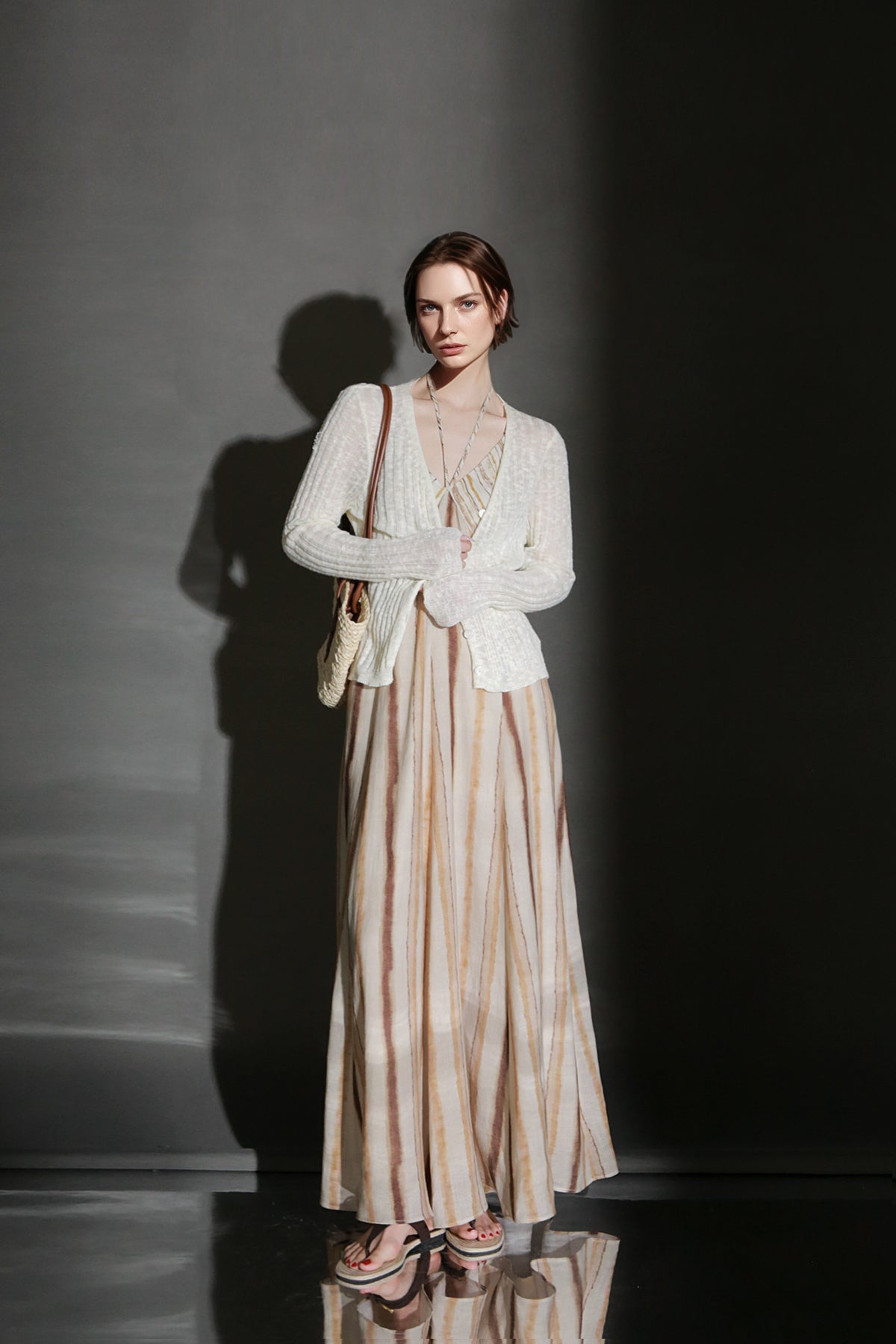 PIAOIN resort-style vertical stripe design sundress women's halterneck design cinched waist dress high-quality spring and summer-GISELLE
