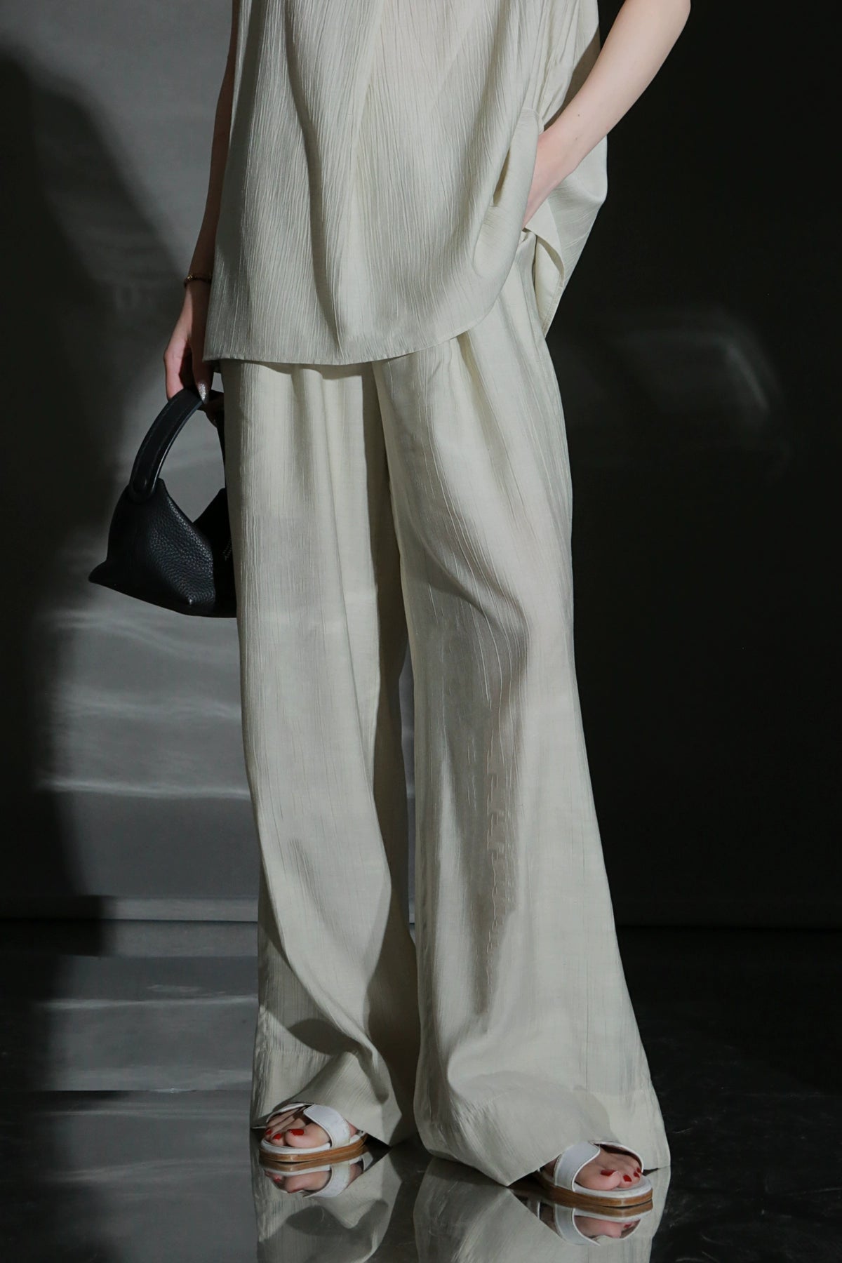 PIAOIN texture linen silk stand up collar sleeveless t-shirt women's straight pants - ARIA