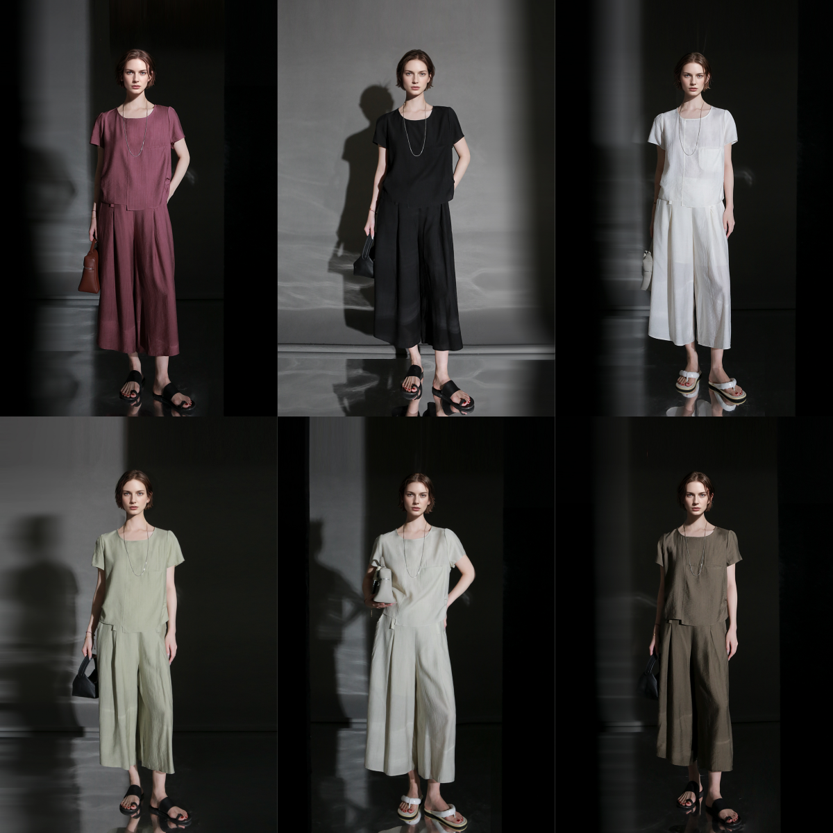 PIAOIN textured linen silk loose wide-leg cropped pants set summer-GISELLE.