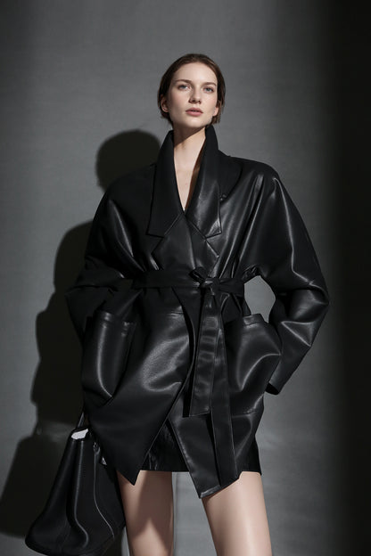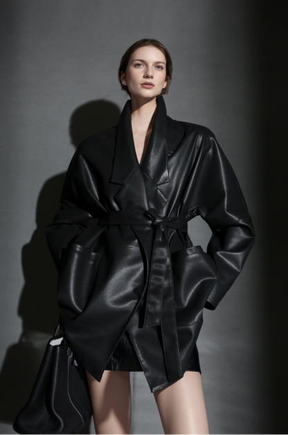 Indulge in the ultimate sense of luxury with PIAOIN's waist suit collar leather jacket. Crafted with the finest sheepskin, this short trench coat exudes class and sophistication. Elevate your style and make a statement of exclusivity with the DAME jacket.