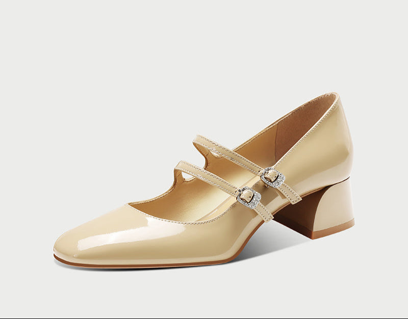 Pjjuu French Silver Mary Jane Small Leather Shoes - BROKE