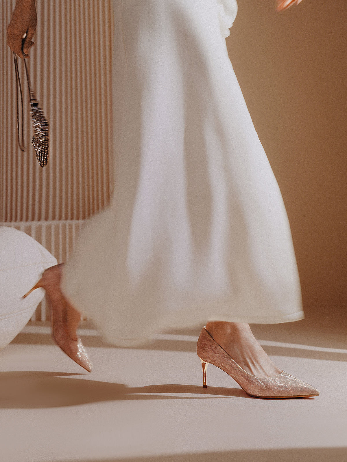 Pjjuu gold silver stiletto kitten heel Bride Wedding pumps - EVA