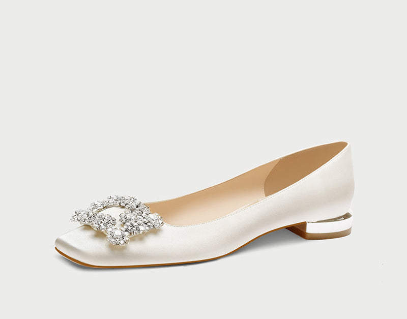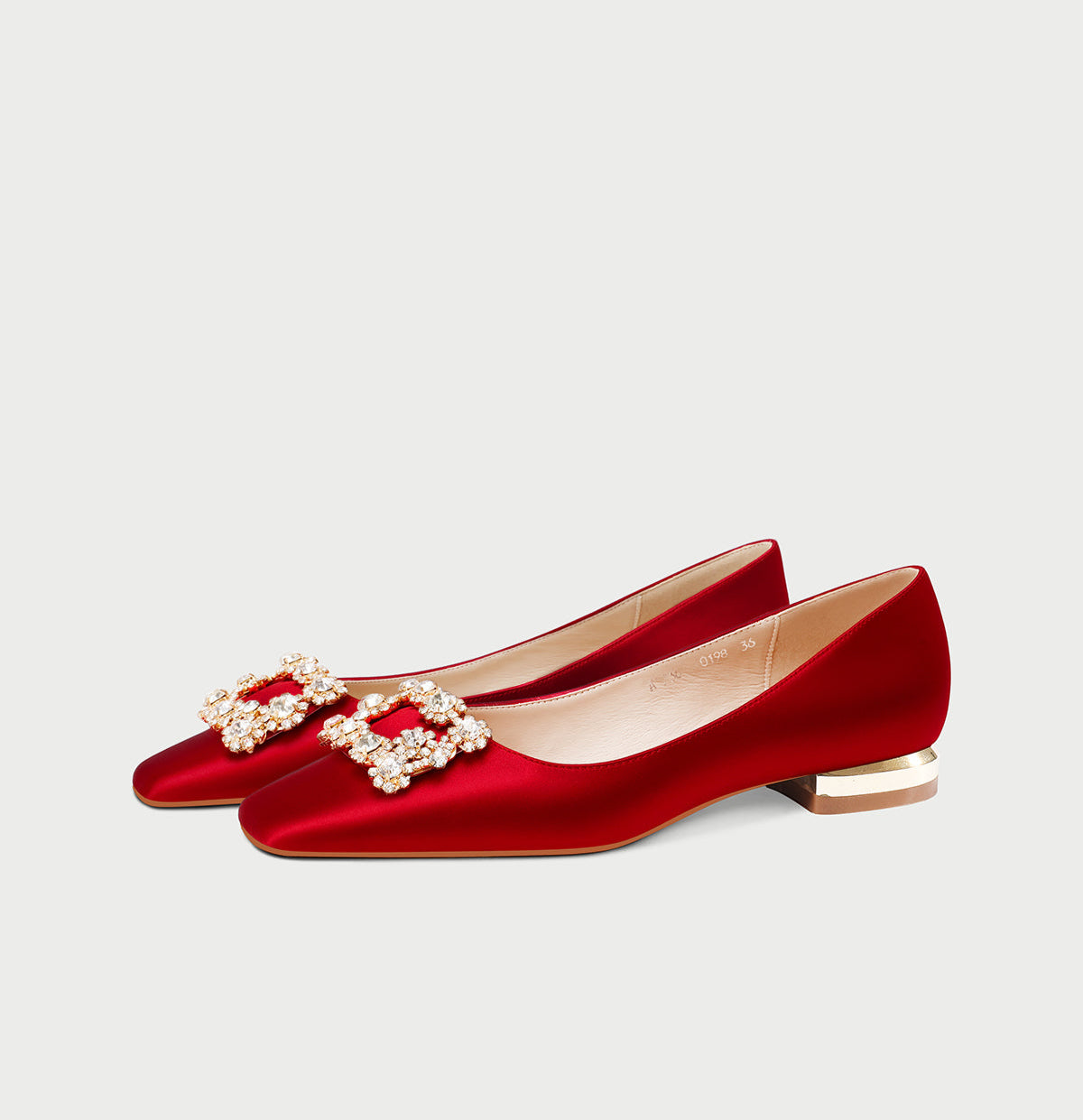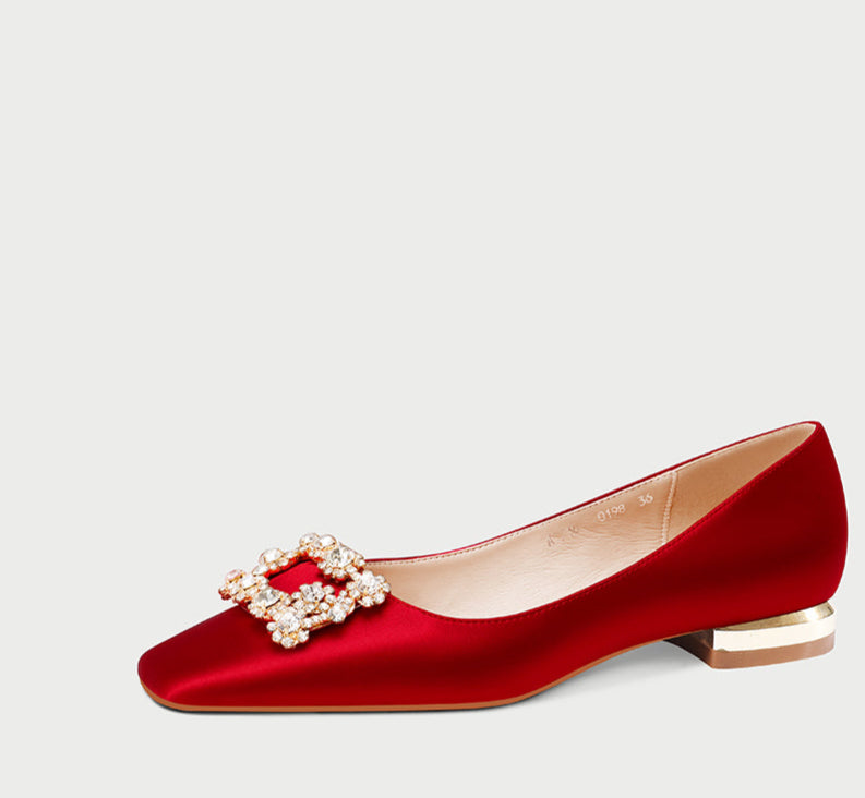 Pjjuu Red bridal white rhinestone jeweled ballet flats Shoes - Valeire