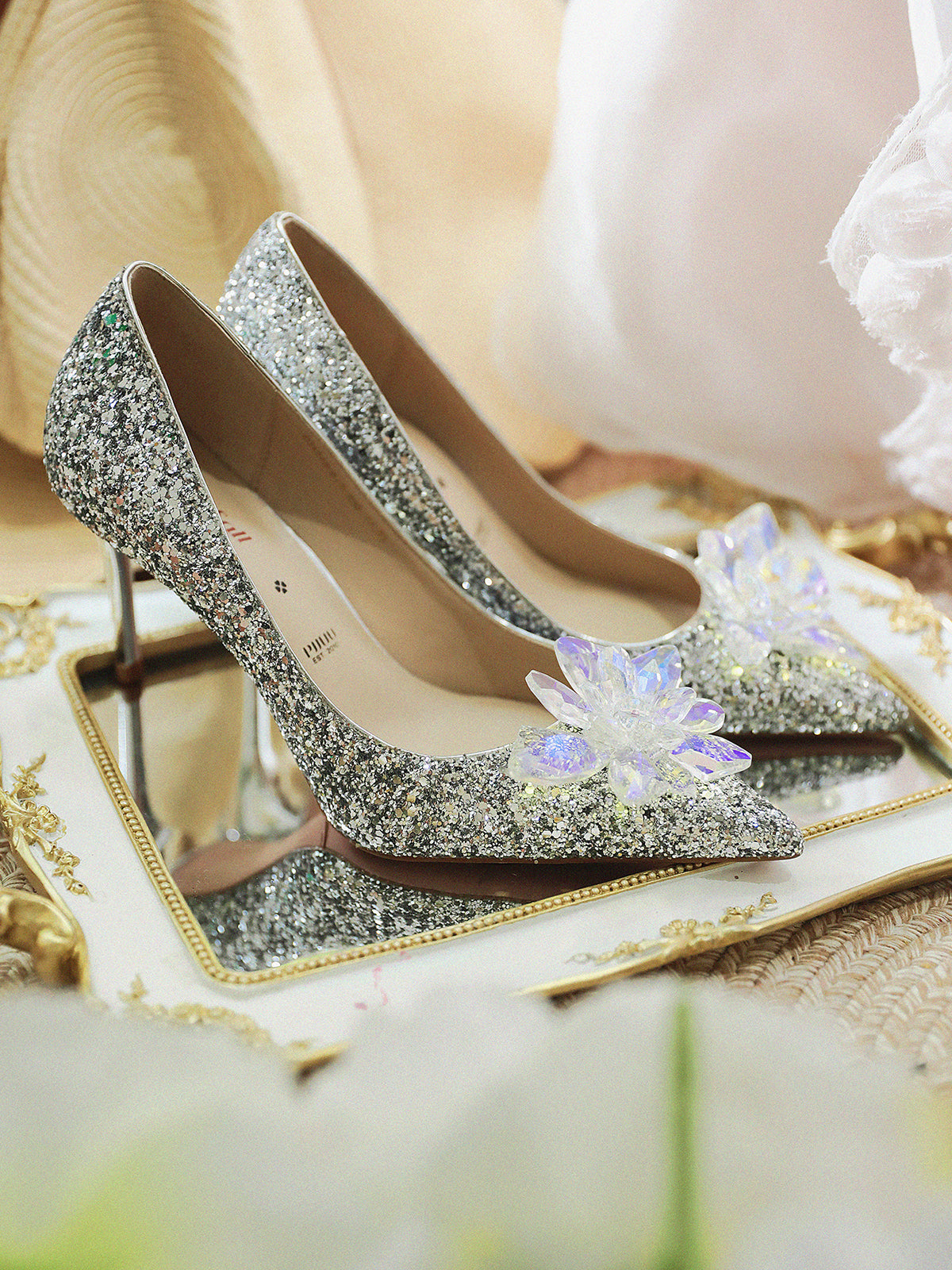 Pjjuu Niche Crystal Wedding Dress Wedding Shoes - Cindy