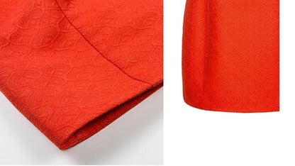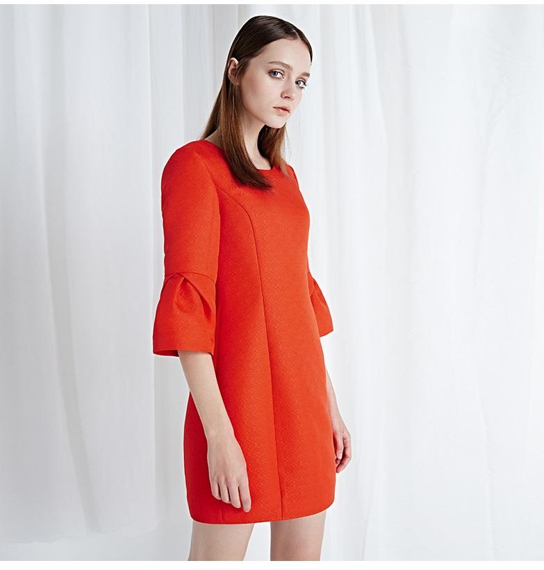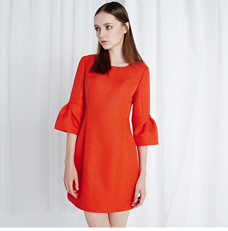 Introducing the Drea Dress from Portrait's Spring 2016 Collection! This stunning round neck dress is the epitome of elegance and style. With its beautiful bud sleeves and vibrant orange color, it's the perfect choice for any occasion.