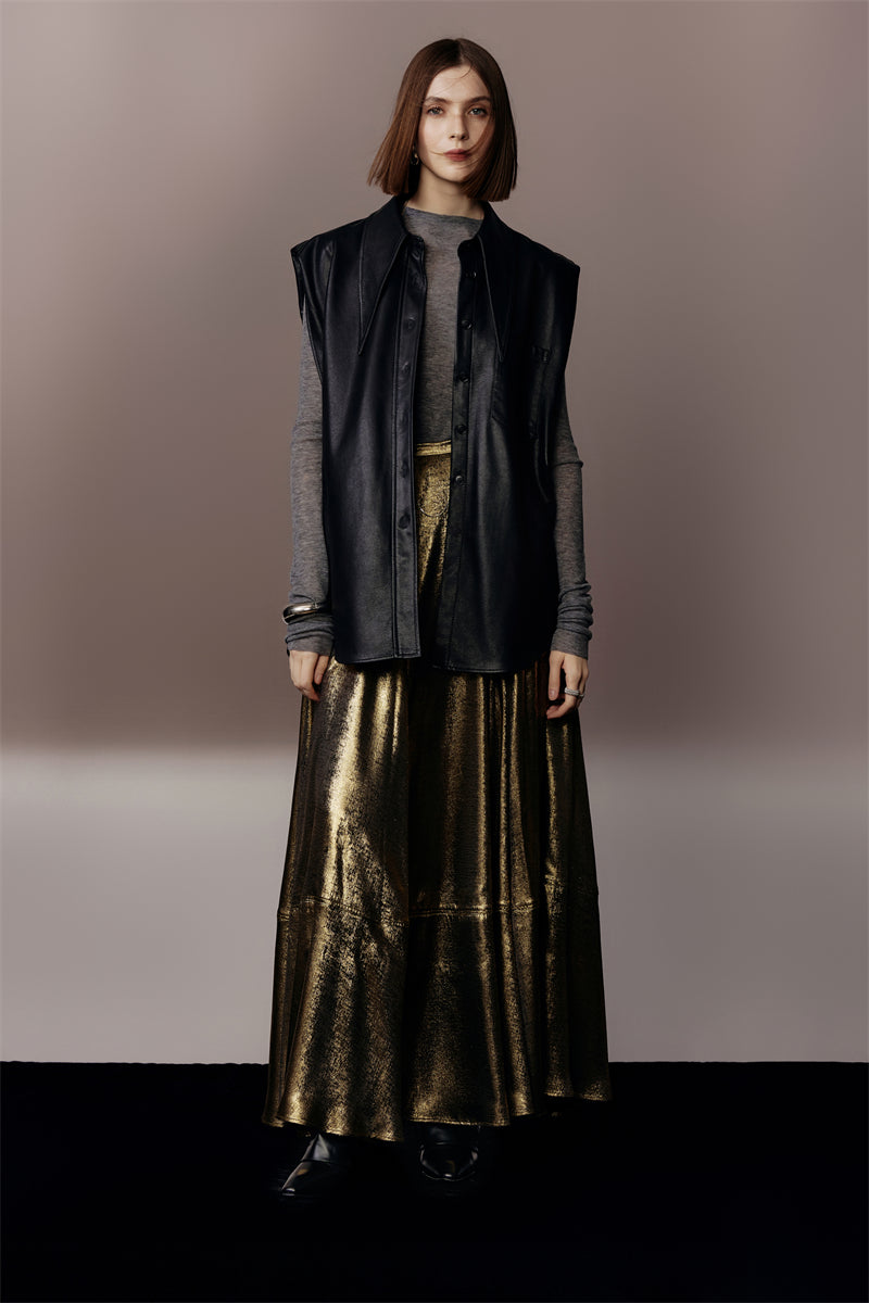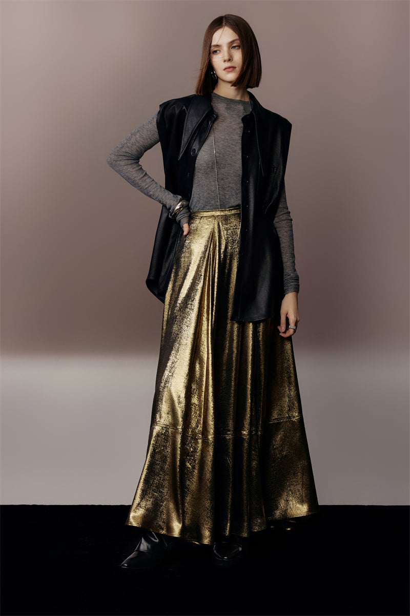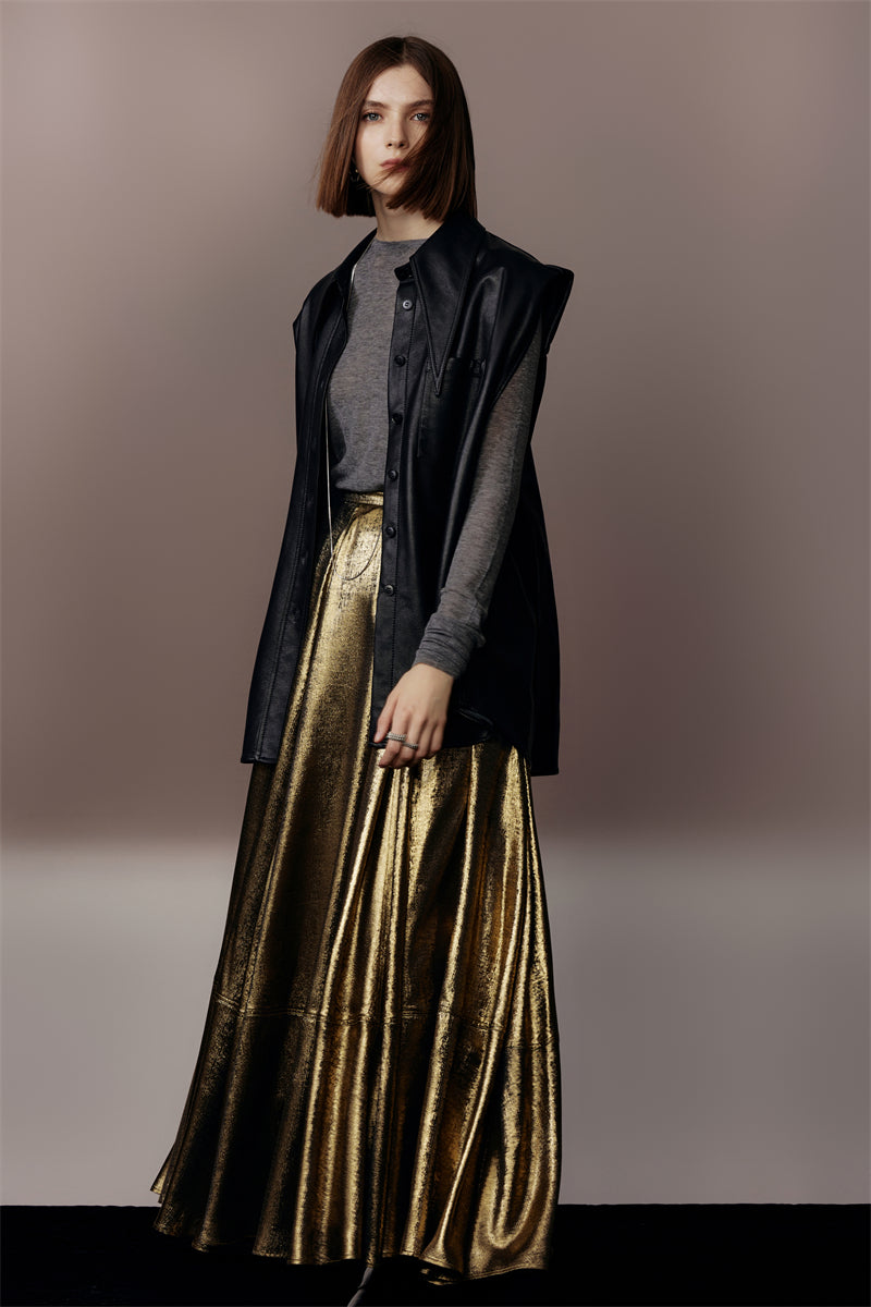 Color classification: light luxury lacquered gold - skirt textured black - leather vest