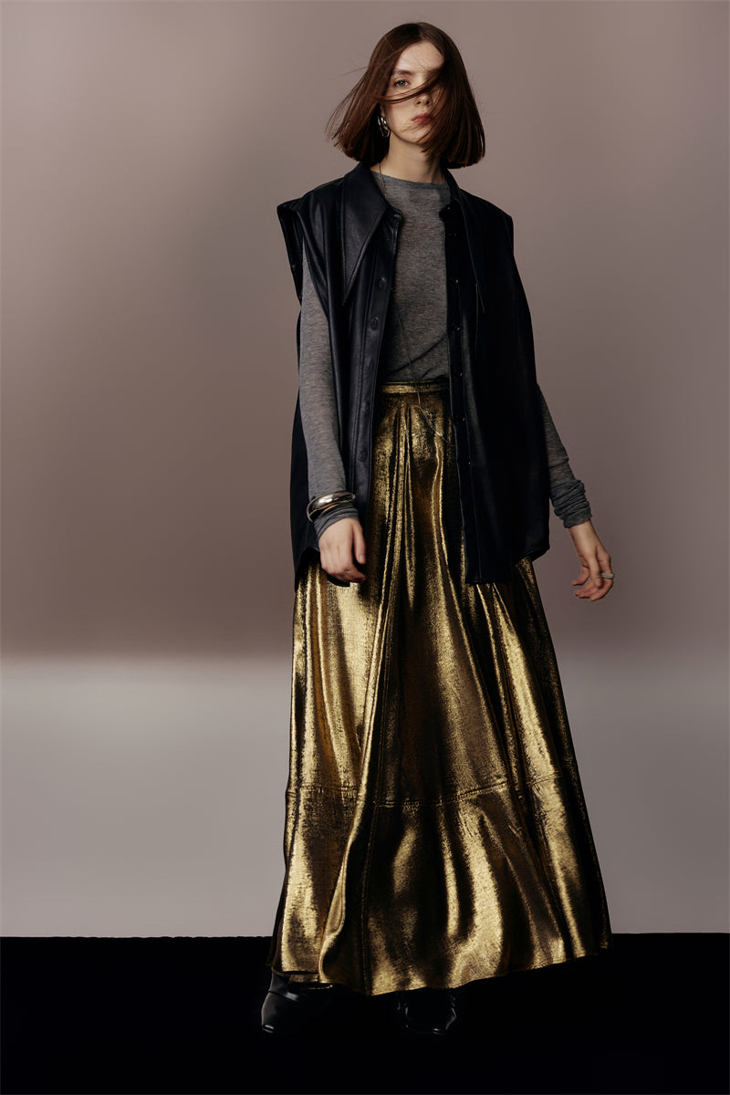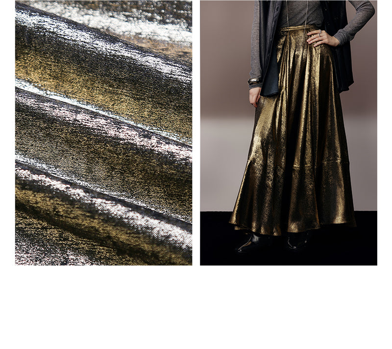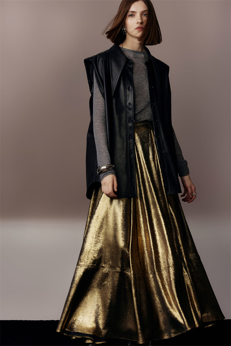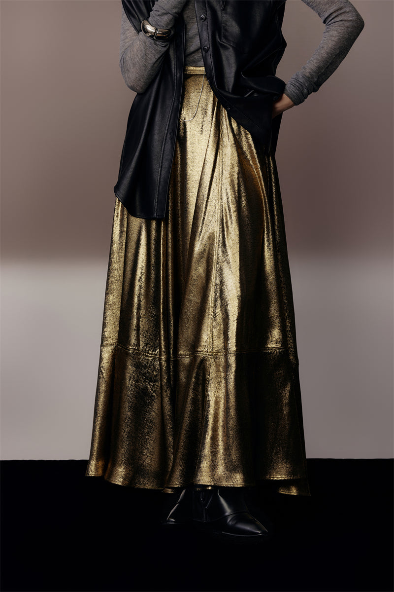 Color classification: light luxury lacquered gold - skirt textured black - leather vest