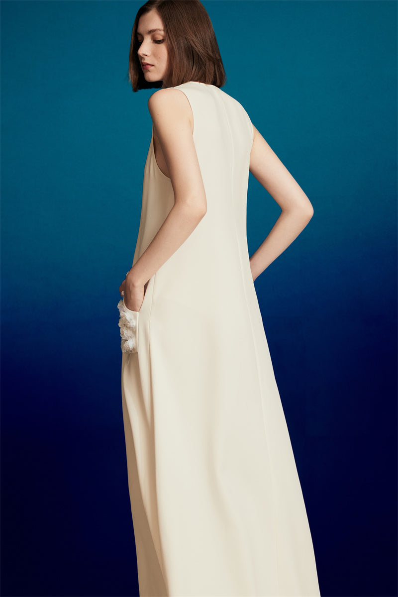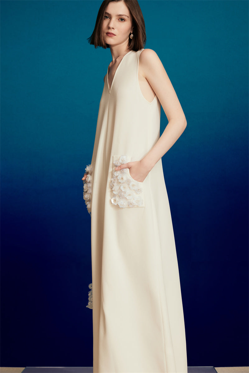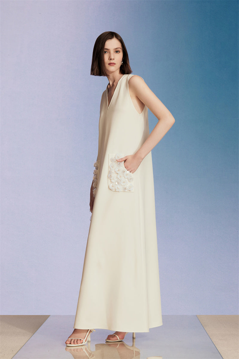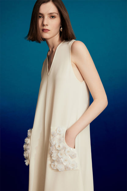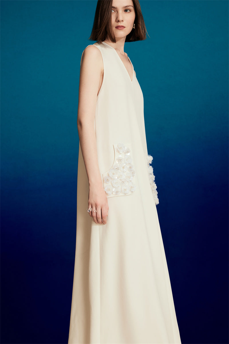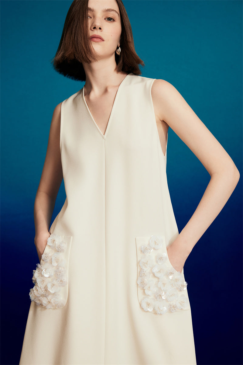 PURITY elegant minimalist v-neck three-dimensional floral sleeveless dress- fairy