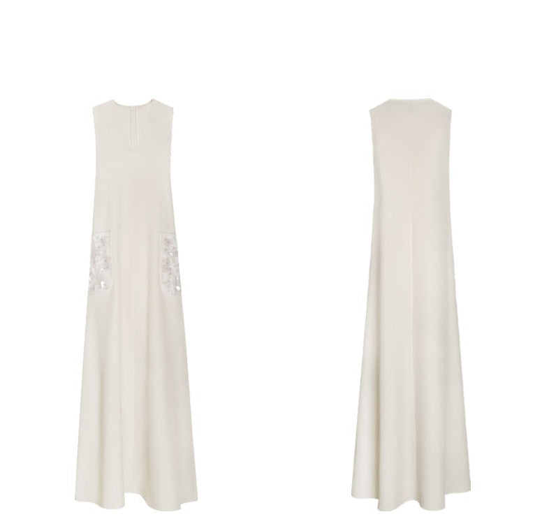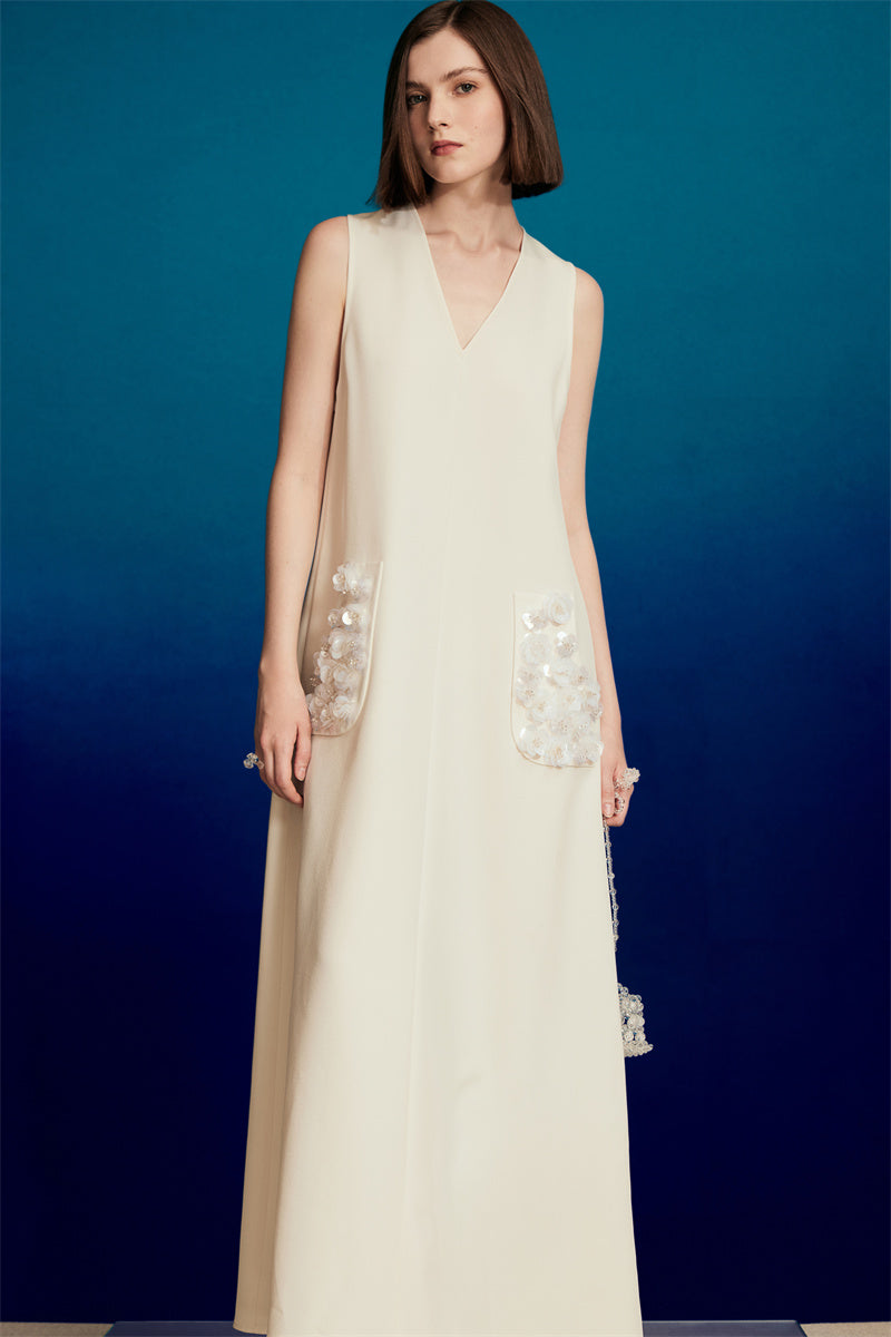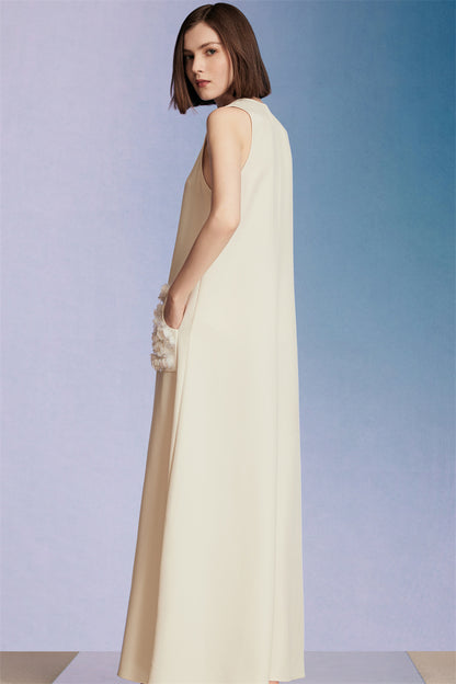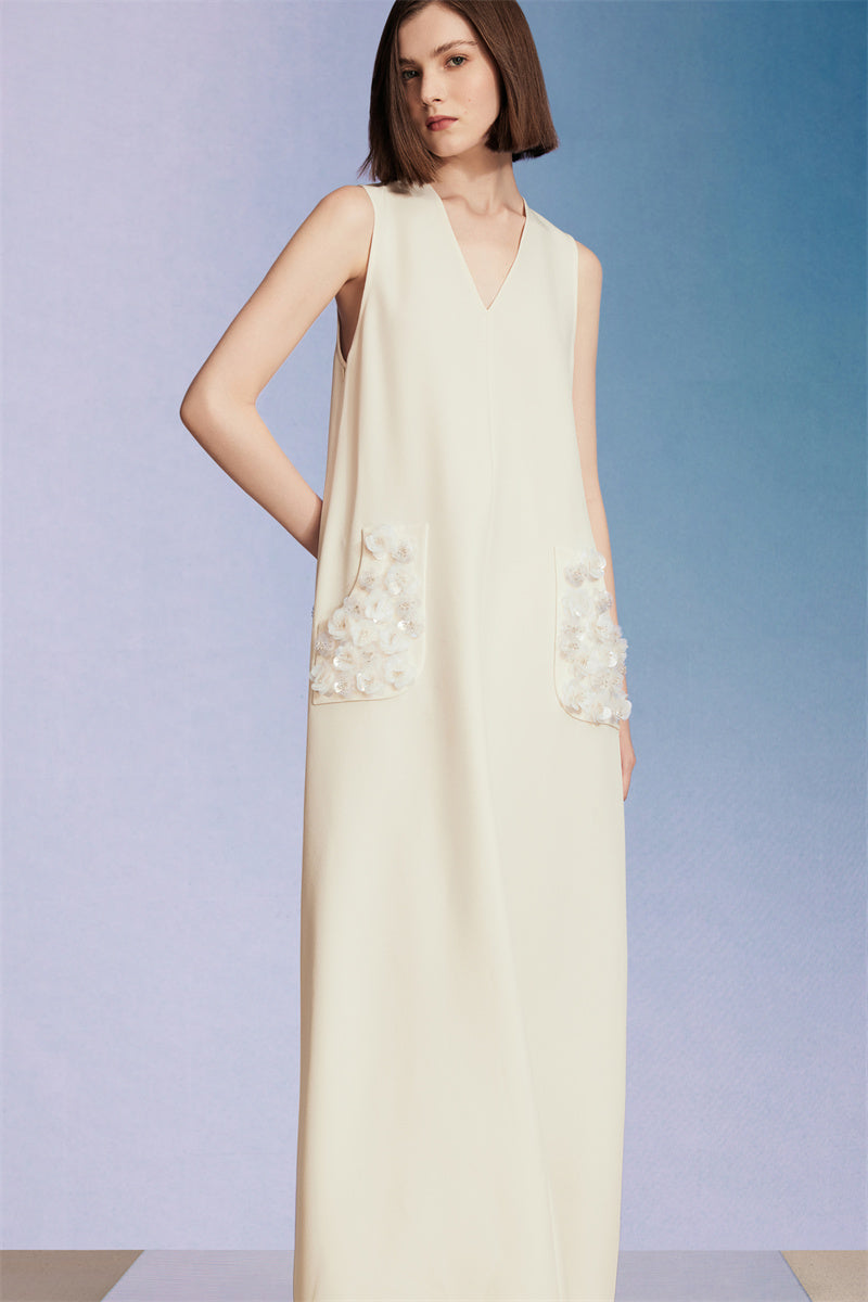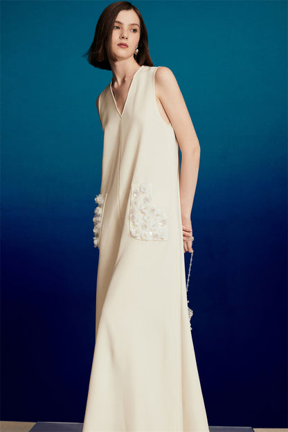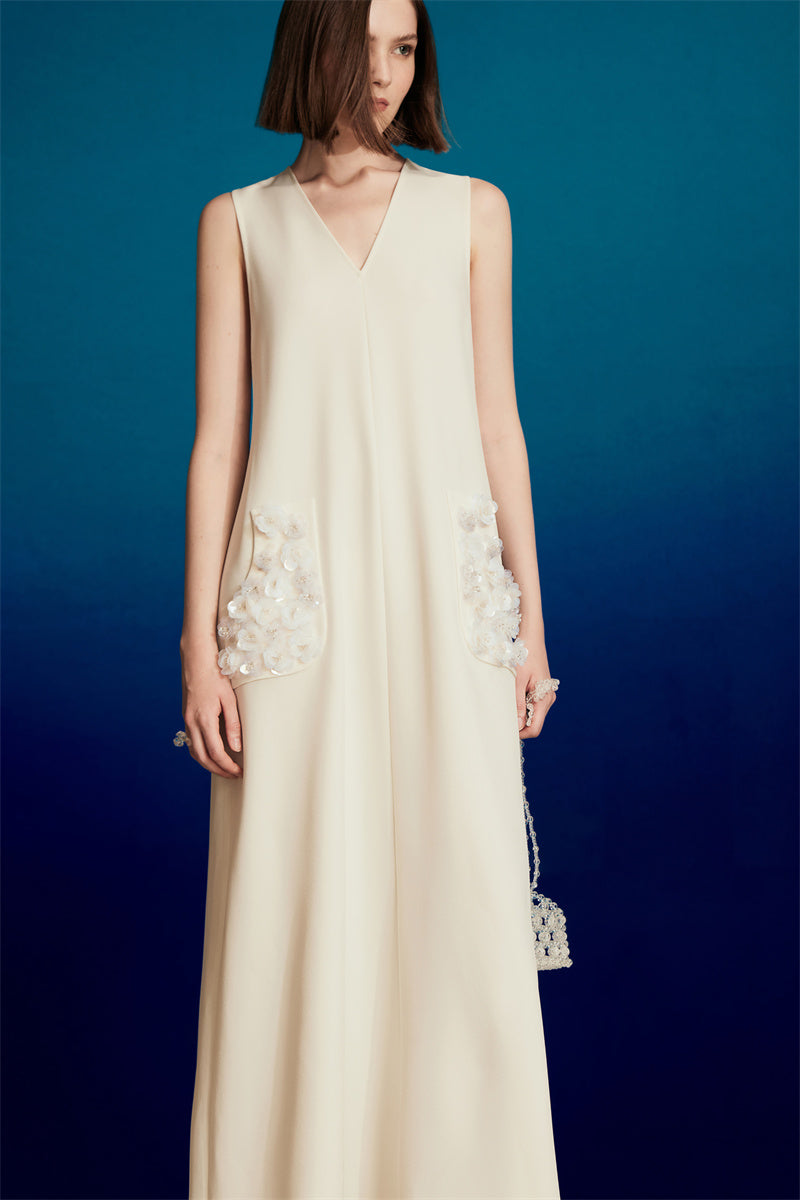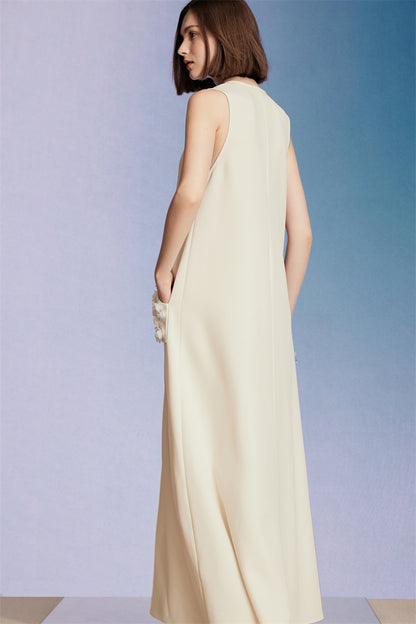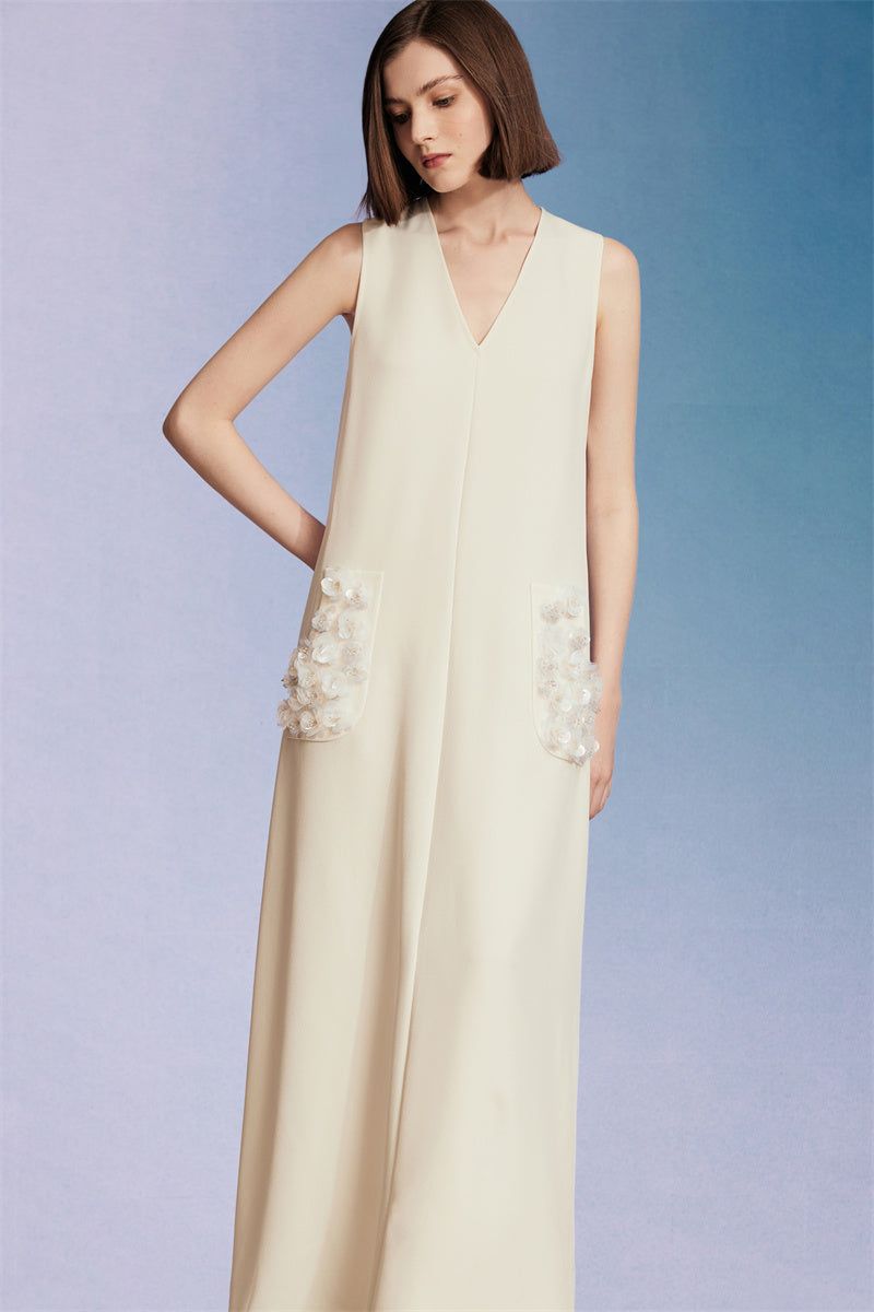 PURITY elegant minimalist v-neck three-dimensional floral sleeveless dress- fairy