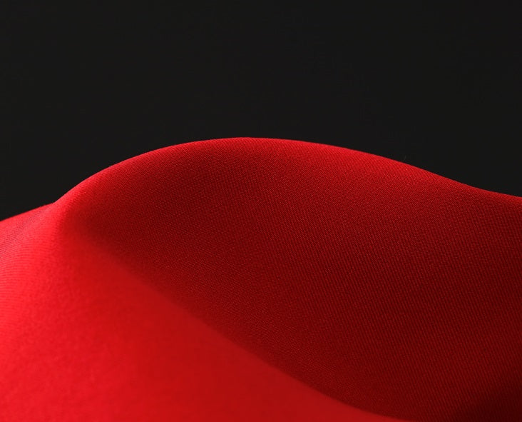 Cuca's Red suit women's 2023 Spring new color matching fake two-piece high-waisted flared jumpsuit features regular sleeves, a slim fit version and nine-quarter length sleeves.