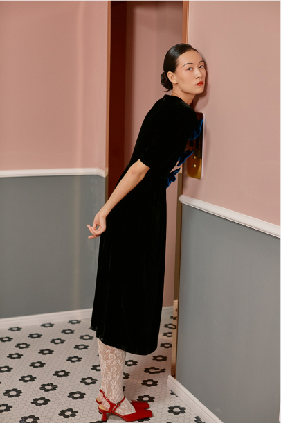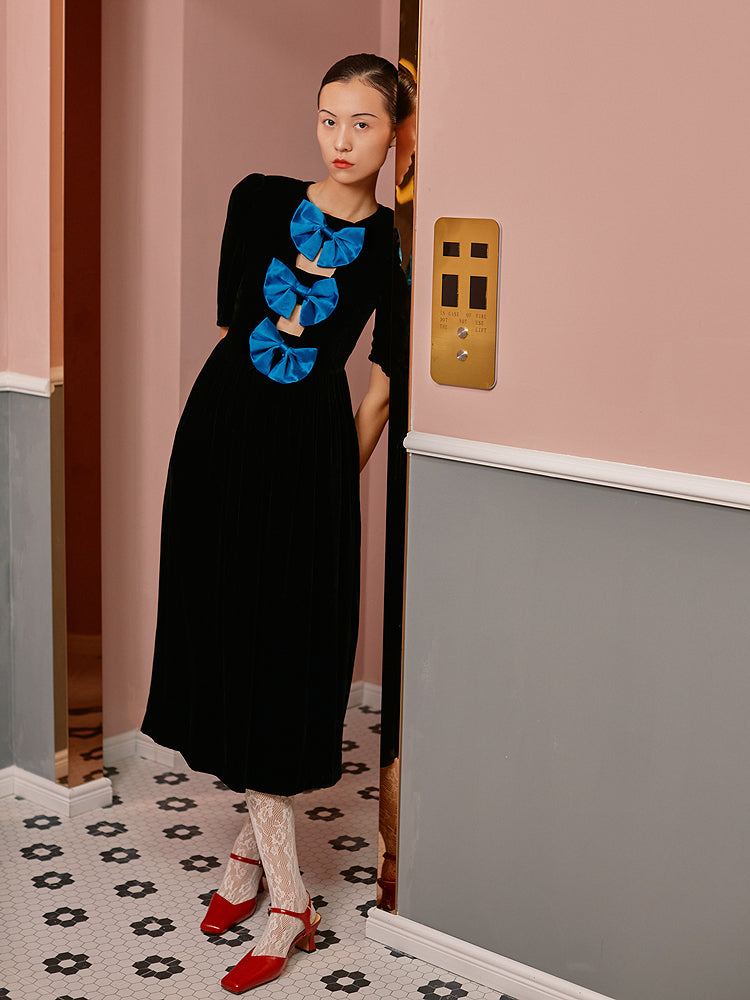 Retro Fashion Short Sleeve Velvet Dress- Jeno