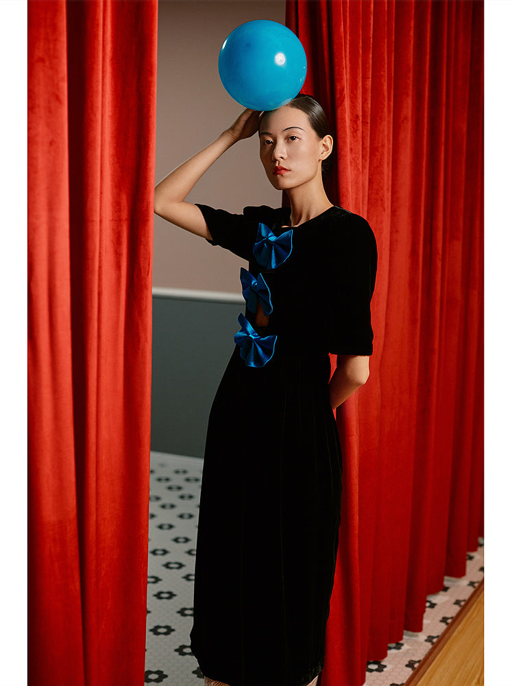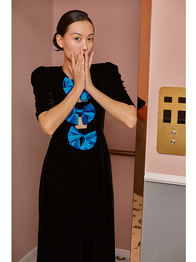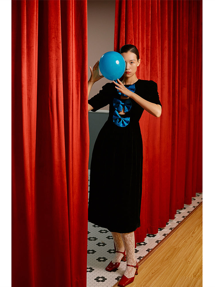 This Retro Fashion Short Sleeve Velvet Dress Photography is tailored from luxurious Mulberry silk and features a high waist, single-breasted closure, and sleeveless design. The plain pattern and mid-length skirt provide a chic and timeless look finished off with a stylish bow tie halter detail. Available in XS to XL sizes as well as black and retro red colors, it's perfect for special occasions.