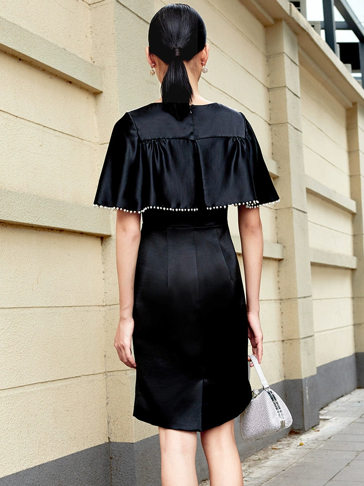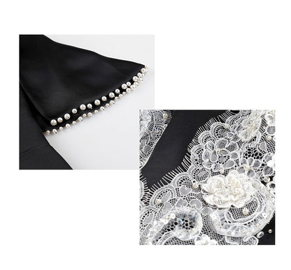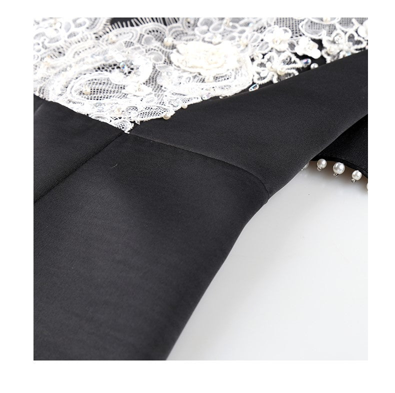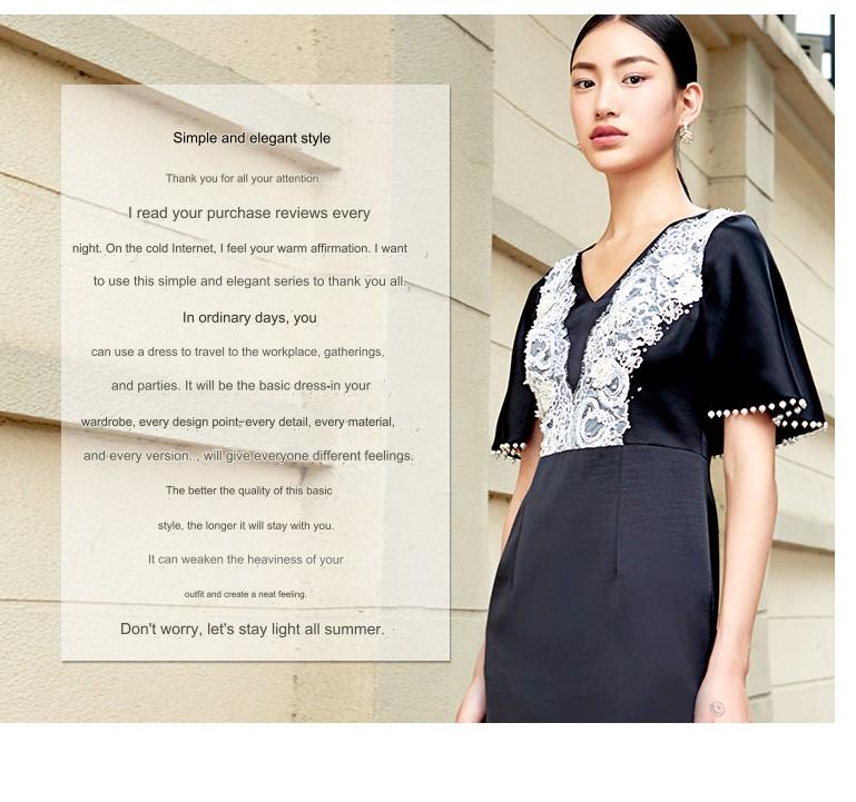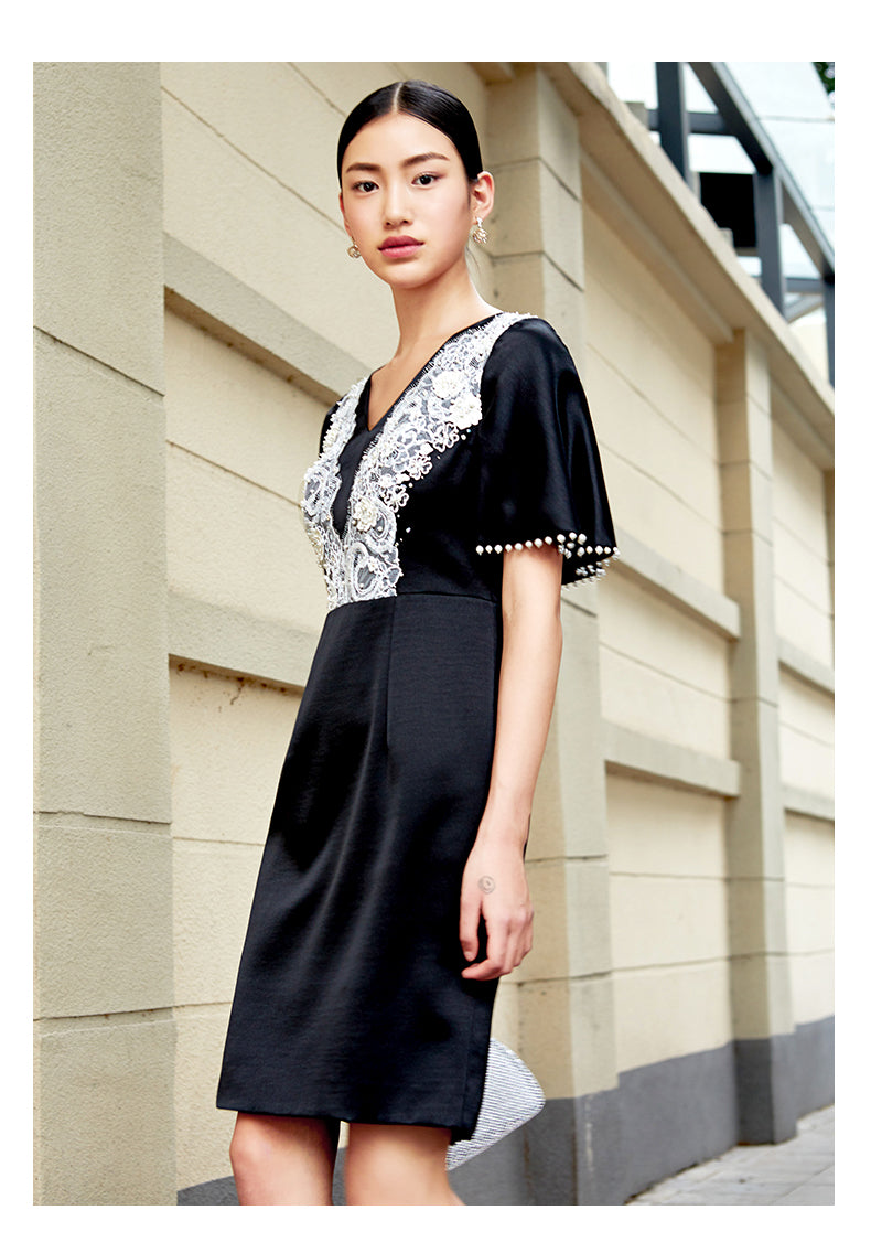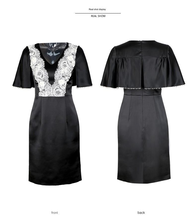 SIDUO High-End short shawl sleeve deep V-neck mid waist black and white short dinner dress-Sophie ( V )