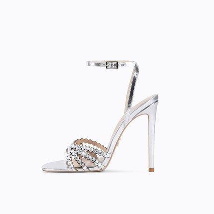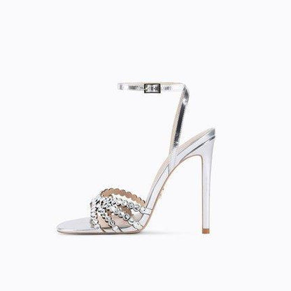 Stiletto high heels rhinestone open toe high heels sandals - Caliop