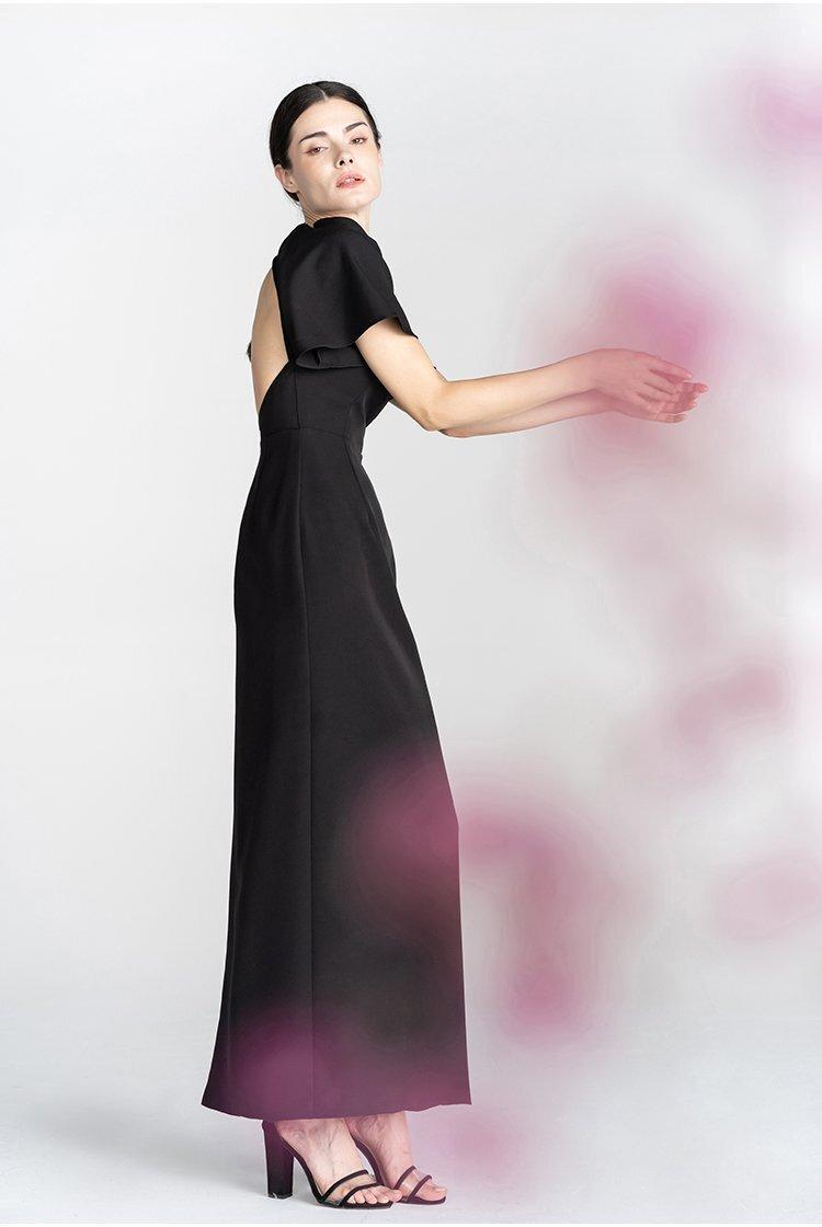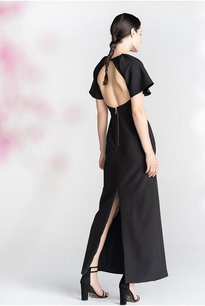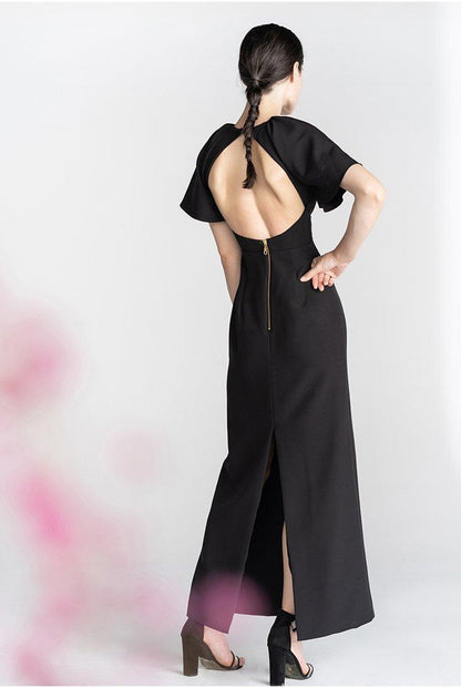Simple elegant minimalist LBD black backleess flip dress - Suila