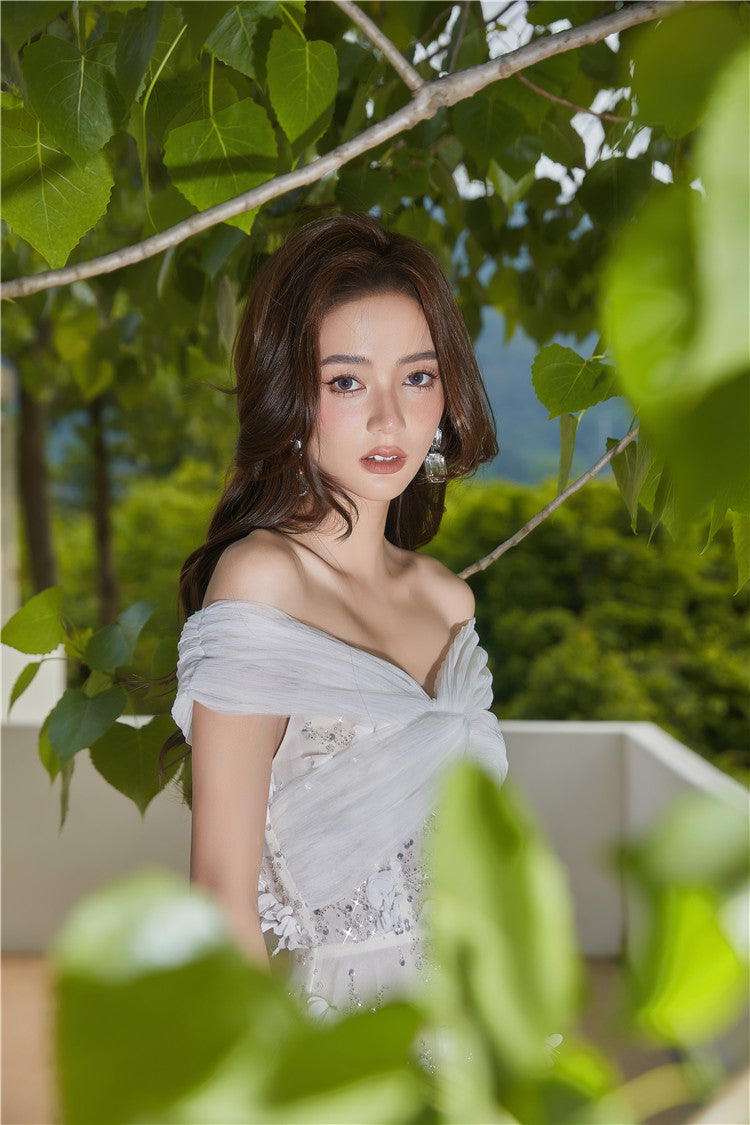 Spot Wardrobes by Chen Elegant White Embroidered applique wedding Dress-Swiss