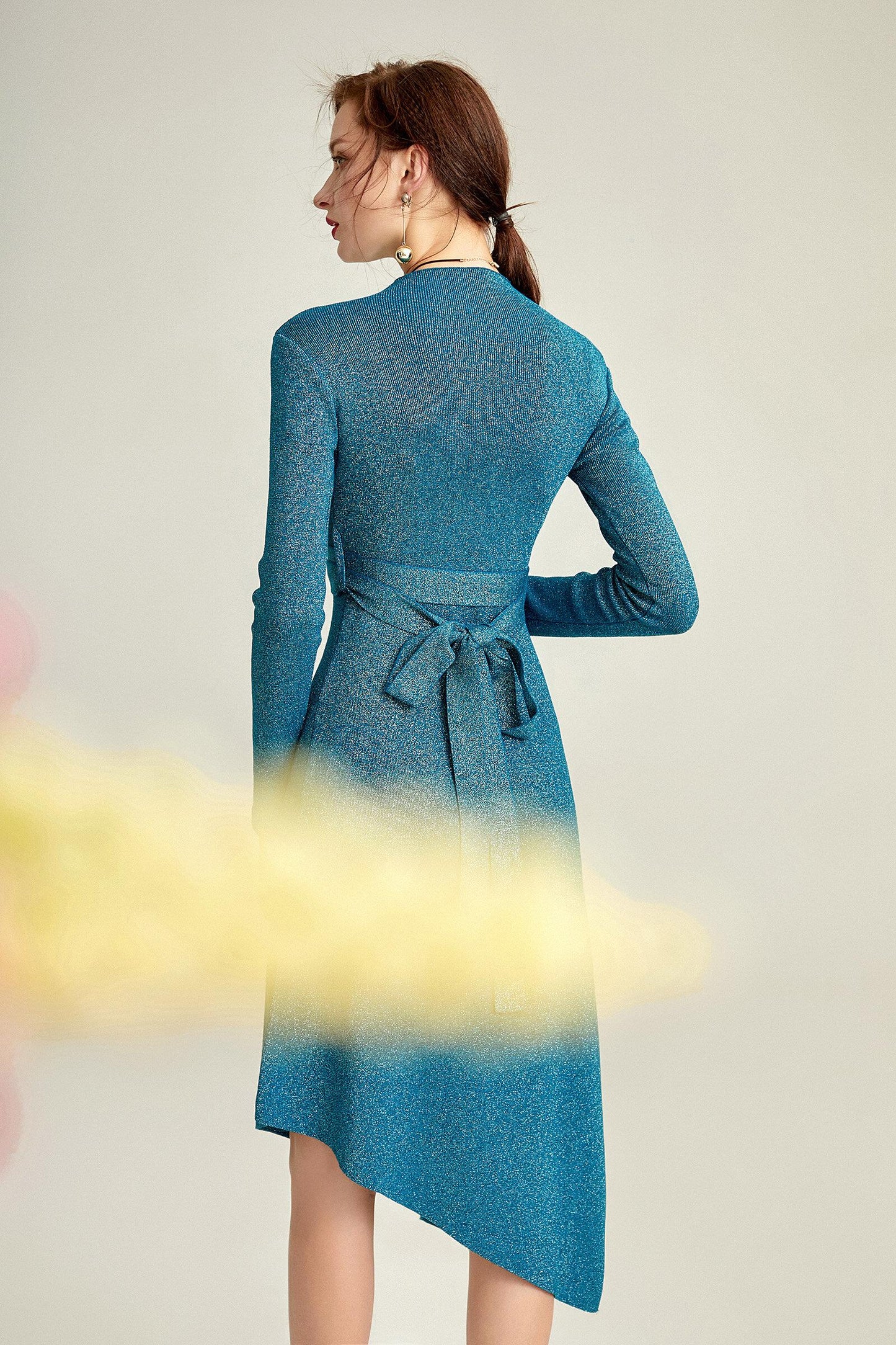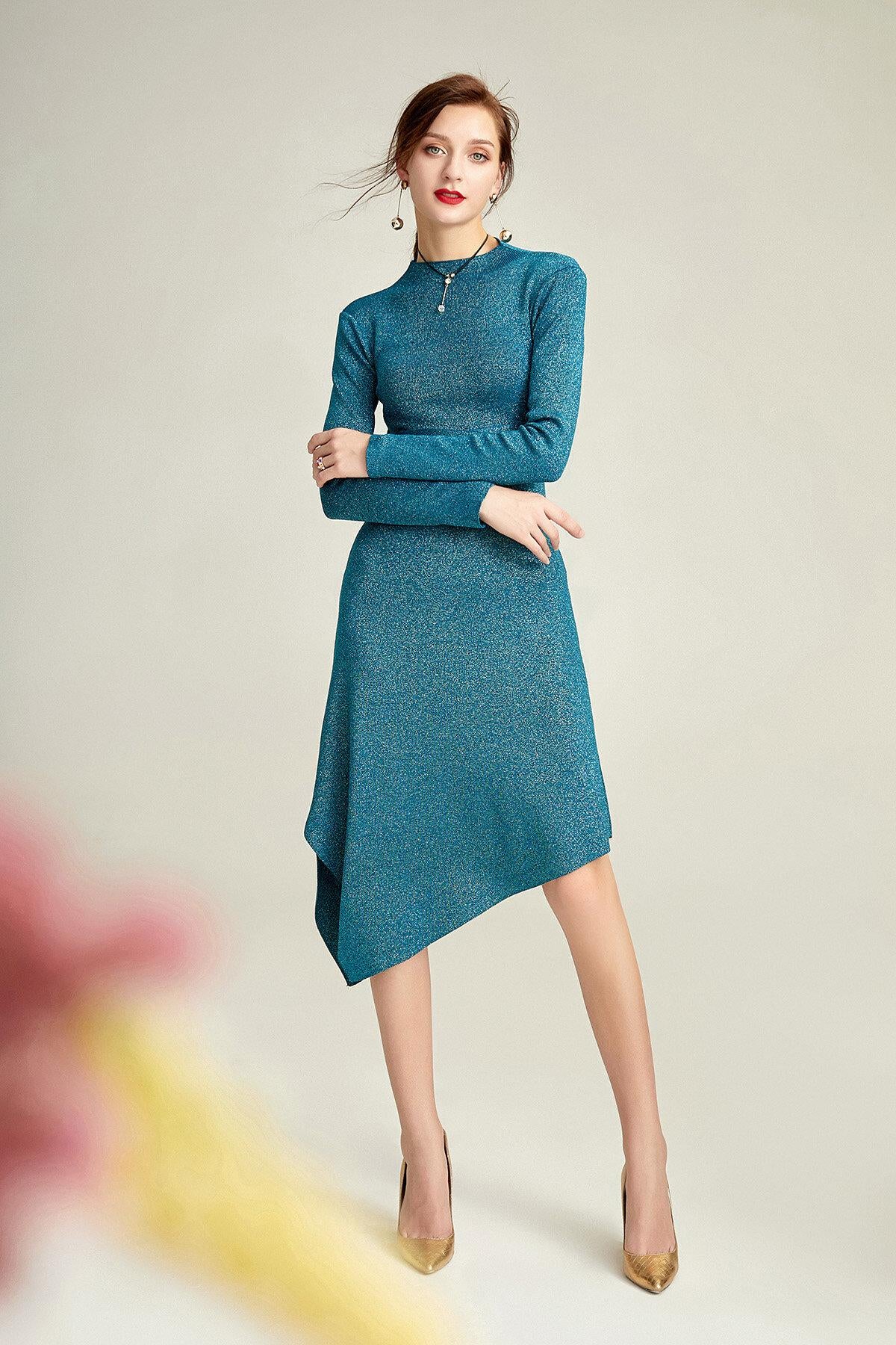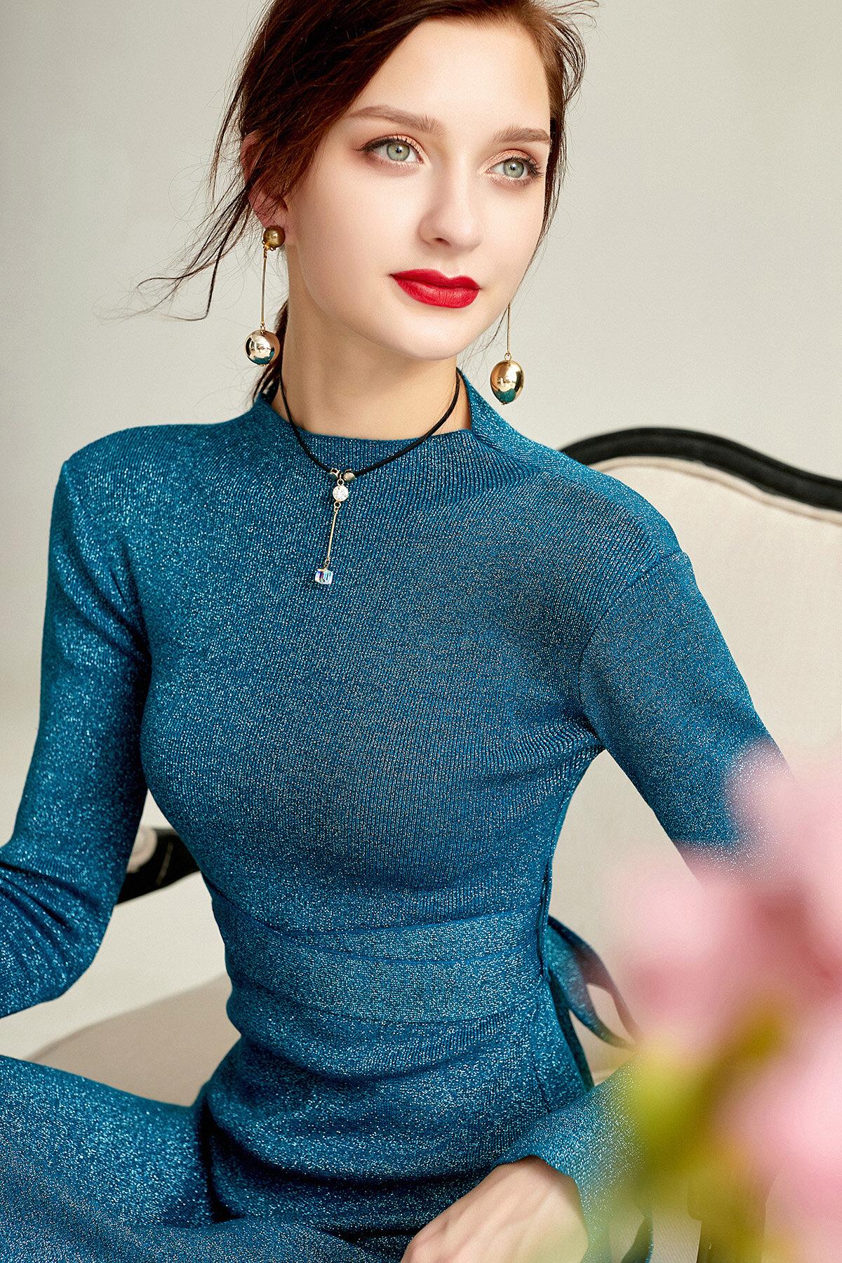 Spring and autumn starry silk soft knitted fish slant blue green dress - Neo