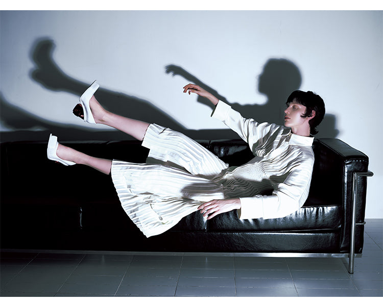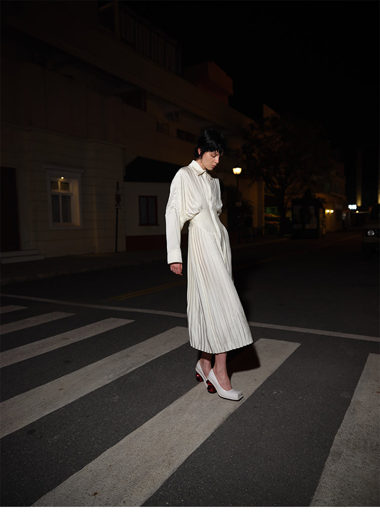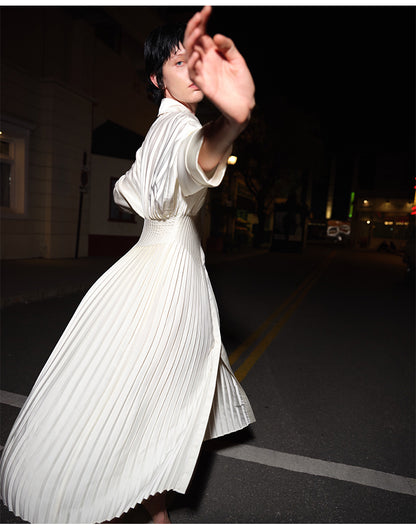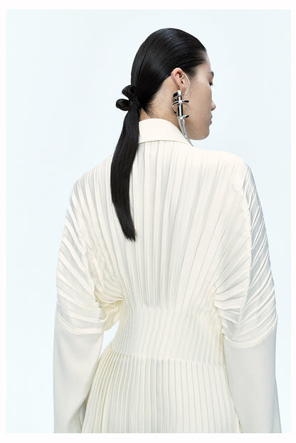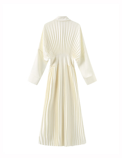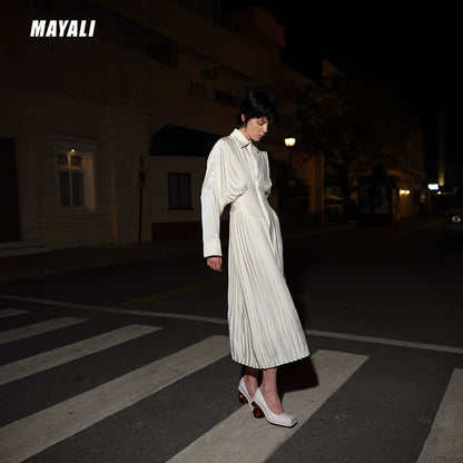 The MAYALI Fall/Winter shirt collar panel pressed pleated long-sleeved dress -Nichee