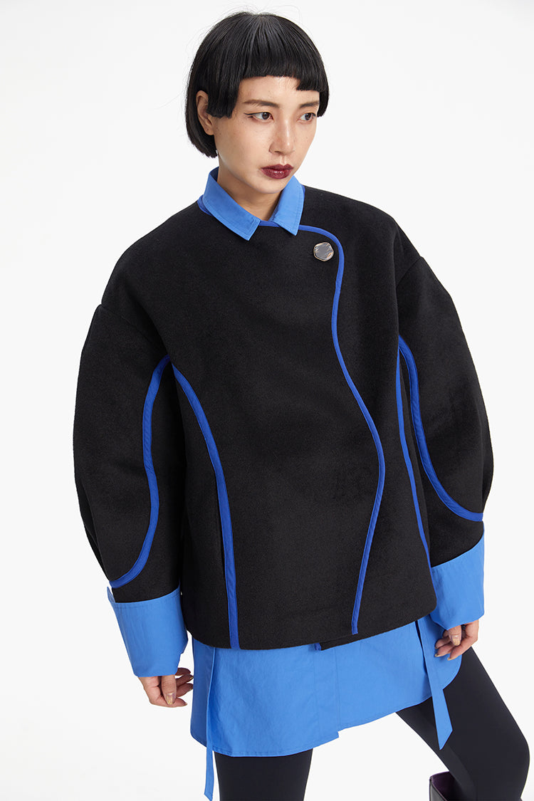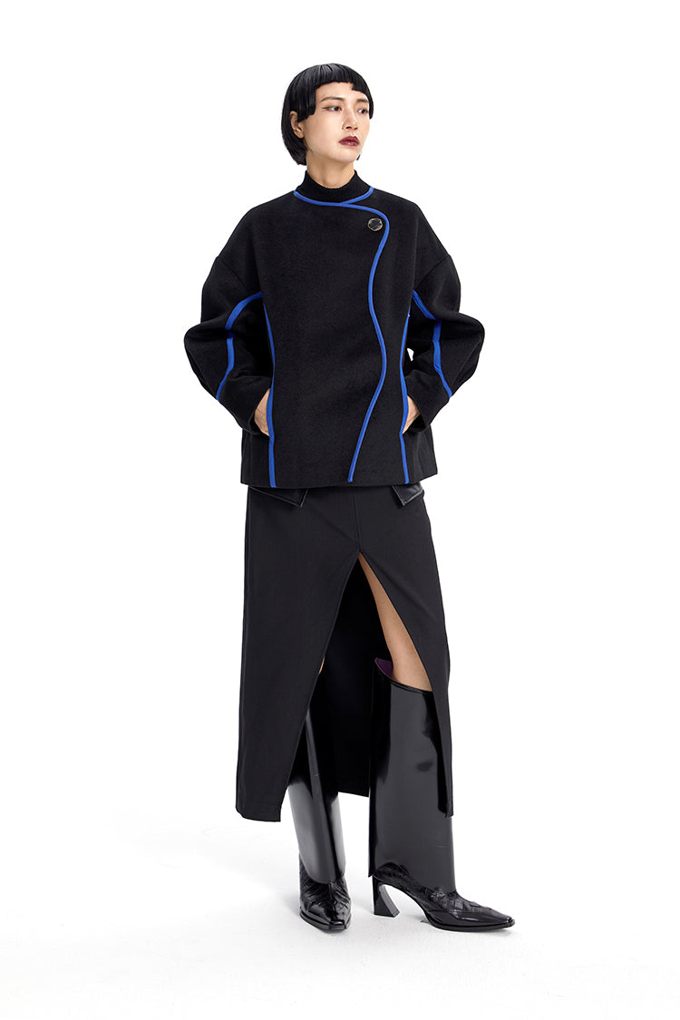 TINY IN Line Cropped Tweed Women's Black Jacket - KENCHO