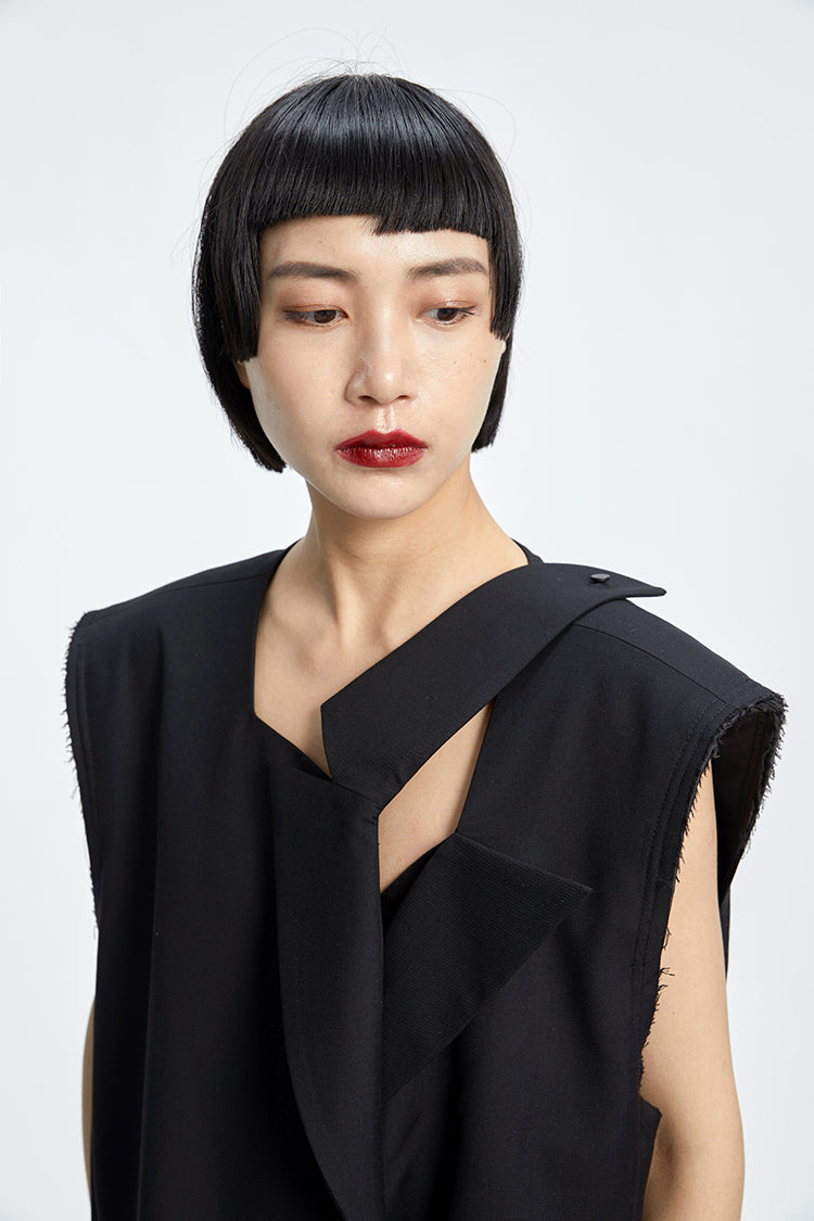 TINY IN misaligned collar silhouette midi vest women's suit -DODO