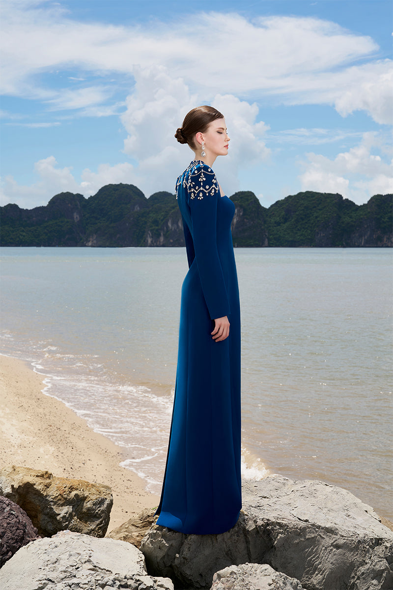 Tracy Studio luxury Queen Anne Crystal Embellished shoulder Long Sleeve Evening Dress - Themis