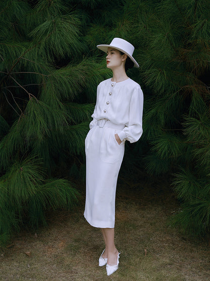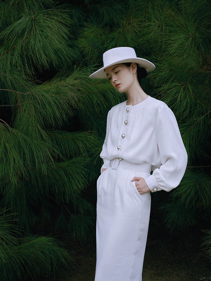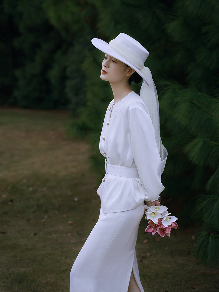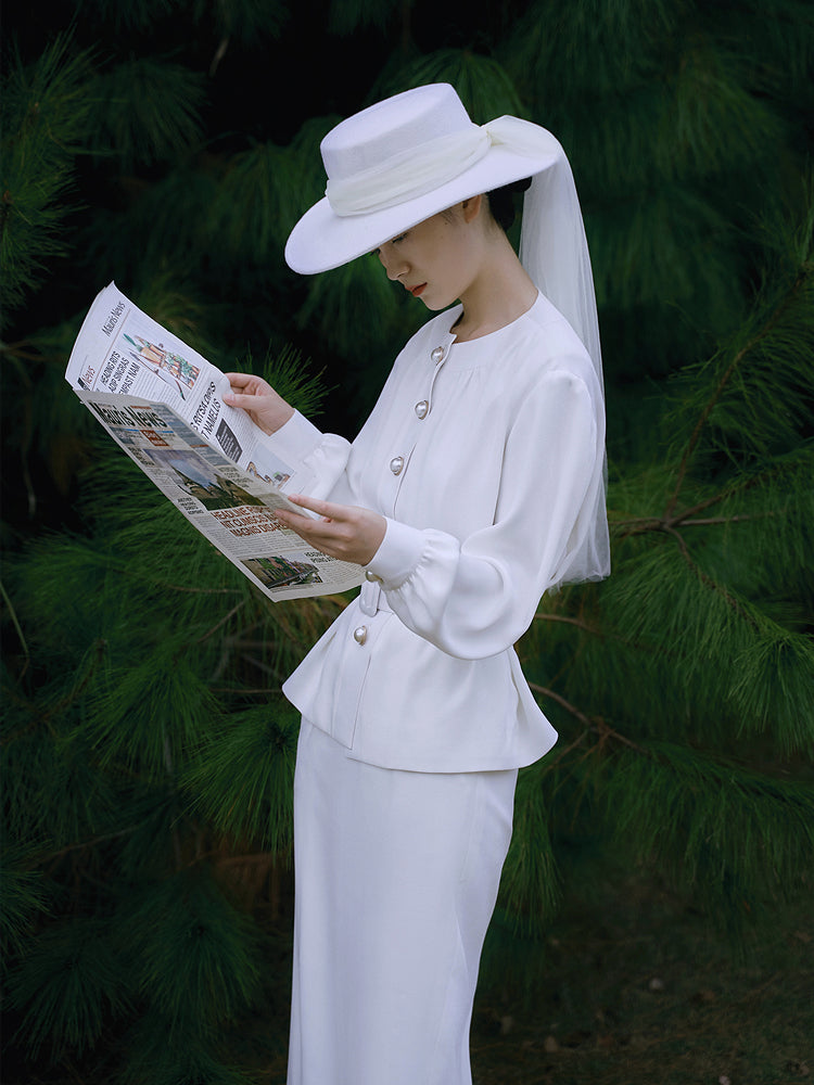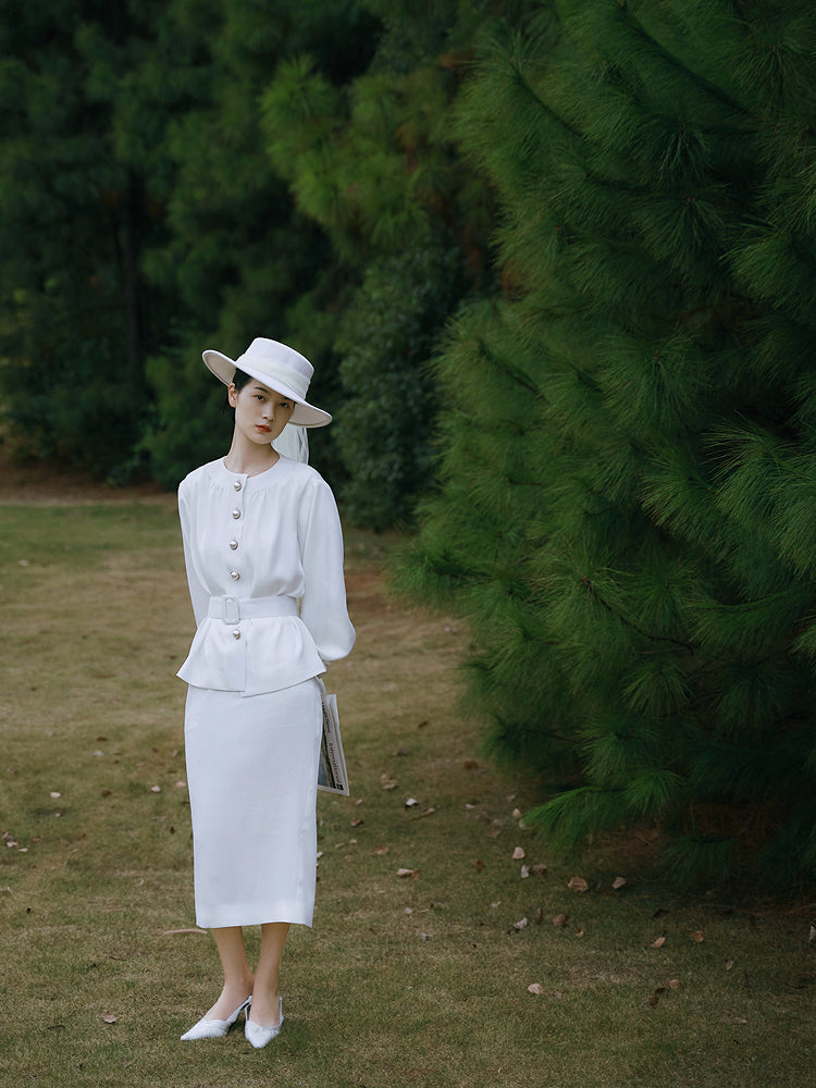 Vintage white pleated fashion suit features a unique, breathable white pleat design, tailored for a loose fit. This contemporary take on a timeless classic complements any wardrobe, making a bold statement without compromising comfort. Made from lightweight, custom fabric, this fashion suit is sure to be a timeless piece in your wardrobe.