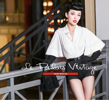 Vintage Limited Edition retro pinup trumpet sleeve black and white jumpsuit- Julia