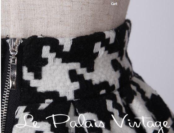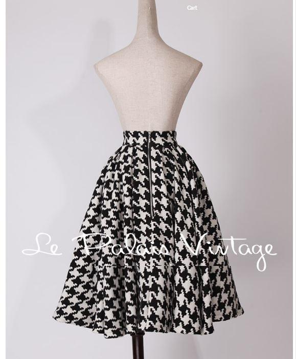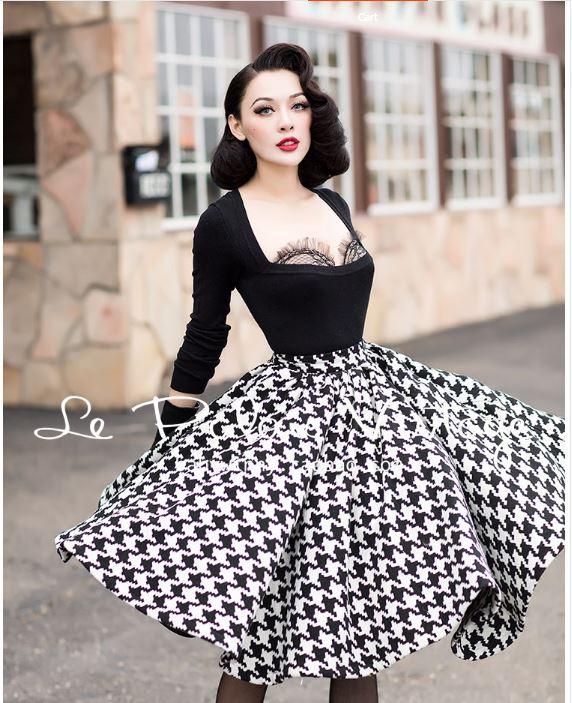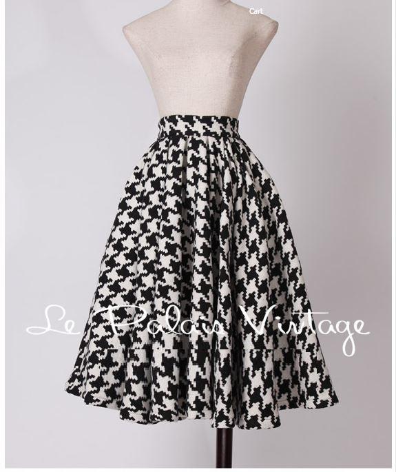 vintage retro elegant black and white hound's-tooth high waist full skirt