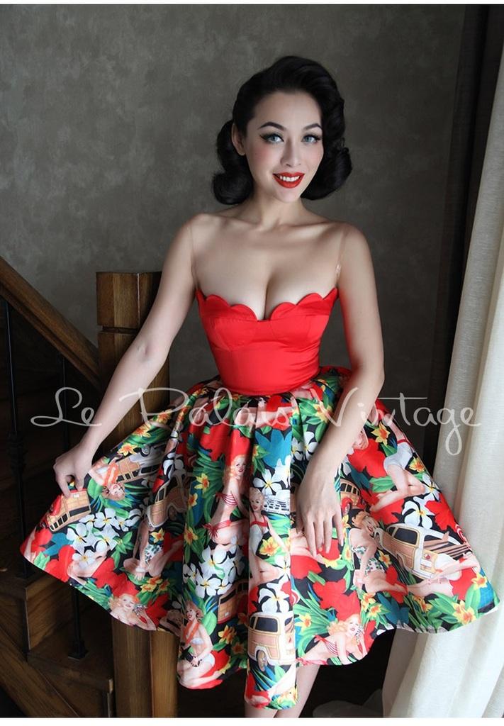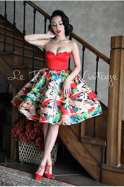 Vintage retro pinup 1950 strapless bustier full skirt floral dress- Dila