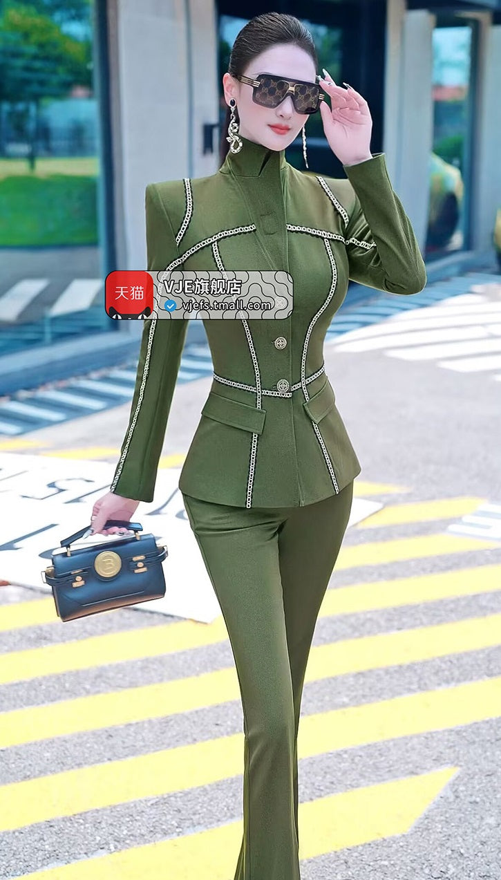 VJE Denim Suit Webbing Jacket Micro Flared Pants Two-Piece Set - OPO.