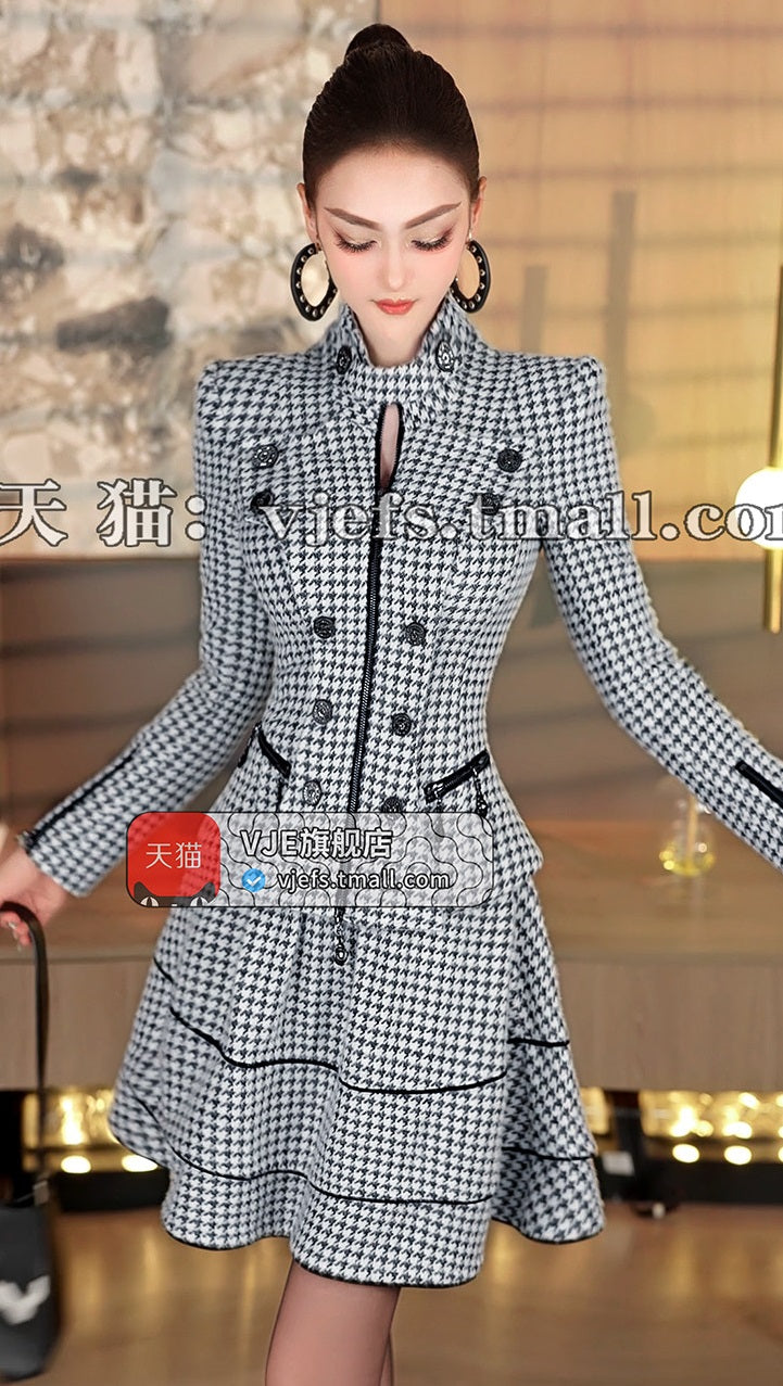 VJE Houndstooth Waist Suit Skirt Top Puffy Skirt Two-Piece Set-AERA.