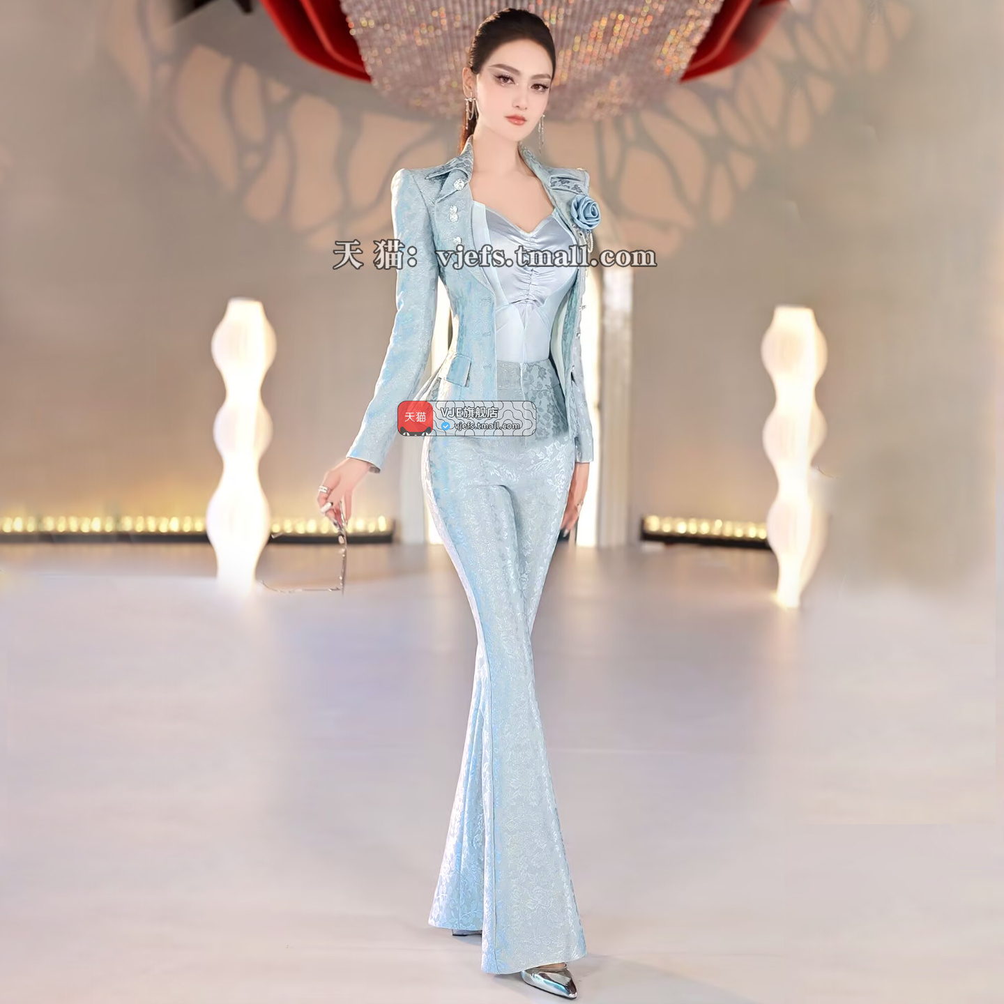 VJE printed small suit jacketbell bottoms three-piece suit set - MARI.
